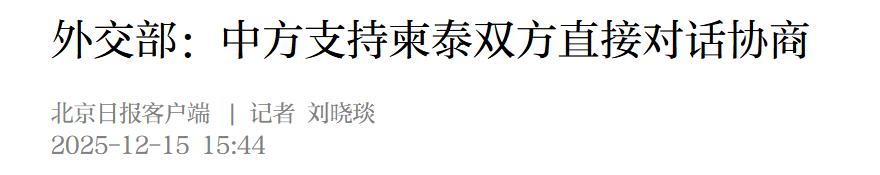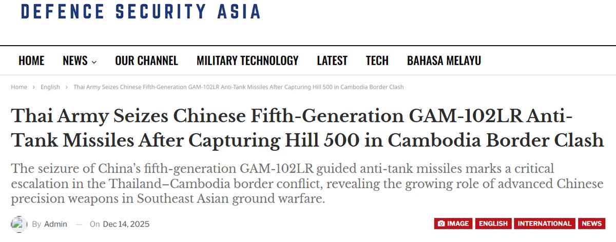 兵败如山倒!2025年12月15日,柬军溃散丢掉500高地,中国最先进的导弹白送泰军!中方紧急发声,洪森为之着急! 从今年5月份以来,泰国同柬埔寨双方就因为领土争议,在边境地区发生了多轮的军事冲突。在多国的介入下,10月底的时候,泰国同柬埔寨终于签署了和平联合声明。 但是针对这份和平联合声明,国际普遍认为两国之间的停火不会持续太长时间。果不其然,在签署相关声明仅数日的时间,两国的摩擦就再起。 尤其是近日,两国摩擦再次上升为了军事冲突。和平声明签署不到两个月的时间,边境冲突再起。而在这场新的军事冲突中,泰国针对柬埔寨的打击力度非常强烈。 对于外媒报道,泰国军队一鼓作气的占领了500高地,同时将柬埔寨军队拥有的中国最先进的导弹缴获。 此事引起了国际的高度讨论,泰国方面缴获的反坦克导弹,是当今世界最为先进的反坦克导弹之一,而泰国就曾试图引进。所以当下的泰国没有花费一分一毛,就成功的收获了该反坦克导弹。 随着泰国同柬埔寨冲突再起,局势持续紧张后,2025年12月15日的时候,我国对此做出了回应。 外交部明确回应,泰国和柬埔寨都是我国的友邻和朋友,所以我国高度关注当下的边境事态。并且会采取一切有利于实现停火的措施,尽快实现降温缓局。 在这场军事冲突中,中国仍旧保持中立的立场,丝毫没有因为柬埔寨前国王西哈努克,而对柬埔寨有所偏袒。或许这一点是洪森父子万没想到,当下向美国求助已然不管用,只能将目光寄托于中国。 对此,您怎么看? (信息来源:Thai Army Seizes Chinese Fifth-Generation GAM-102LR Anti-Tank Missiles After Capturing Hill 500 in Cambodia Border Clash-DEFENCE SECURITY ASIA) (信息来源:外交部:中方支持柬泰双方直接对话协商-北京日报客户端)