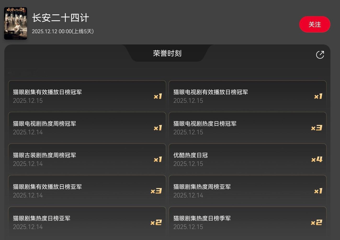 成毅谢淮安角色热度冠军 你看,好的演员、好的角色、好的作品,三相奔赴,是多么热烈的画面,在有效播放破亿、站内热度破9500、总冠名空降后,成毅和他的谢淮安,也迎来了第一个“角色热度”周冠,实至名归,恭喜送上!成毅谢淮安的热度,既来自于人物的丰盈,也来自于权谋的“回响”确立,这里用“回响”这个词汇,是因为彼时的我们,只看清了谢淮安的一颗落子,而未读懂他落子的“千里之外”,当剧情推进到某一个点,那颗落子才会有了回响,这就是谢淮安的权谋回响。比如昨夜剧情中的狄路,他就是谢淮安制造周墨假死落子的回响;再如,韩子凌,我们初见时只是匆匆一瞥的尸体,却在藏兵巷中有了回响;还有,那枚必须要从青衣手中拿到的金币,在心姨的妥协中,有了回响。太多太多的回响,让我在往后的剧集中,不得不多揣几个心眼,少一个、漏一眼,都会得不到谢淮安的回响,这样的权谋男主,才配的上“大”字!跨年电影愿2025年度电影结算画面 成毅谢淮安角色热度冠军
