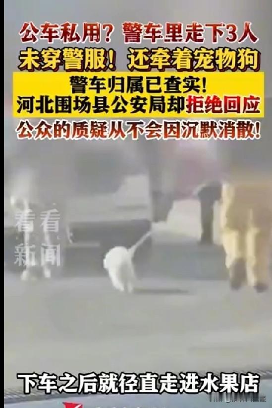 真的非常感谢现在的网络和手机! 近日,河北承德,一网友发现一辆警车停在某超市门口,从车上下来两女一男3人,其中一女子还牵着一条小宠物狗,下车后,他们进了超市。 当时,该网友感觉公车私用,于是把这一幕用手机录了视频,并发在网上。 视频在网上传播后,引起社会关注和网友们热议,当地相关部门发现网上舆情后,立刻介绍调查,经过调查发现,原来驾驶警车的是围场县公安局的一名辅警时某某,当时他因公驾驶警车前往承德市区,顺带母亲和妻子前往,在下车购物时被网友拍视频曝光网络。围场县公安局根据相关规定,目前,时某某已经被解除劳动合同。 公务车、警车私用,这种情况,在过去可以说是非常普遍,过去网络、手机还没普及,曝光违法违纪问题只有记者才有能力,而今天,网络、手机,已经成为百姓生活的一部分,对于生活中发生的不合理不合法现象,每个人随时都有权利和义务拍下视频曝光。 因此说,非常感谢现在的的网络和手机,为每个公民提供了曝光和举报违法违纪问题的机会。 通过这件事,也提醒所有人,在公共场所,一定要注意自己的言行举止。 对此,大家怎么看?承德警车私用事件