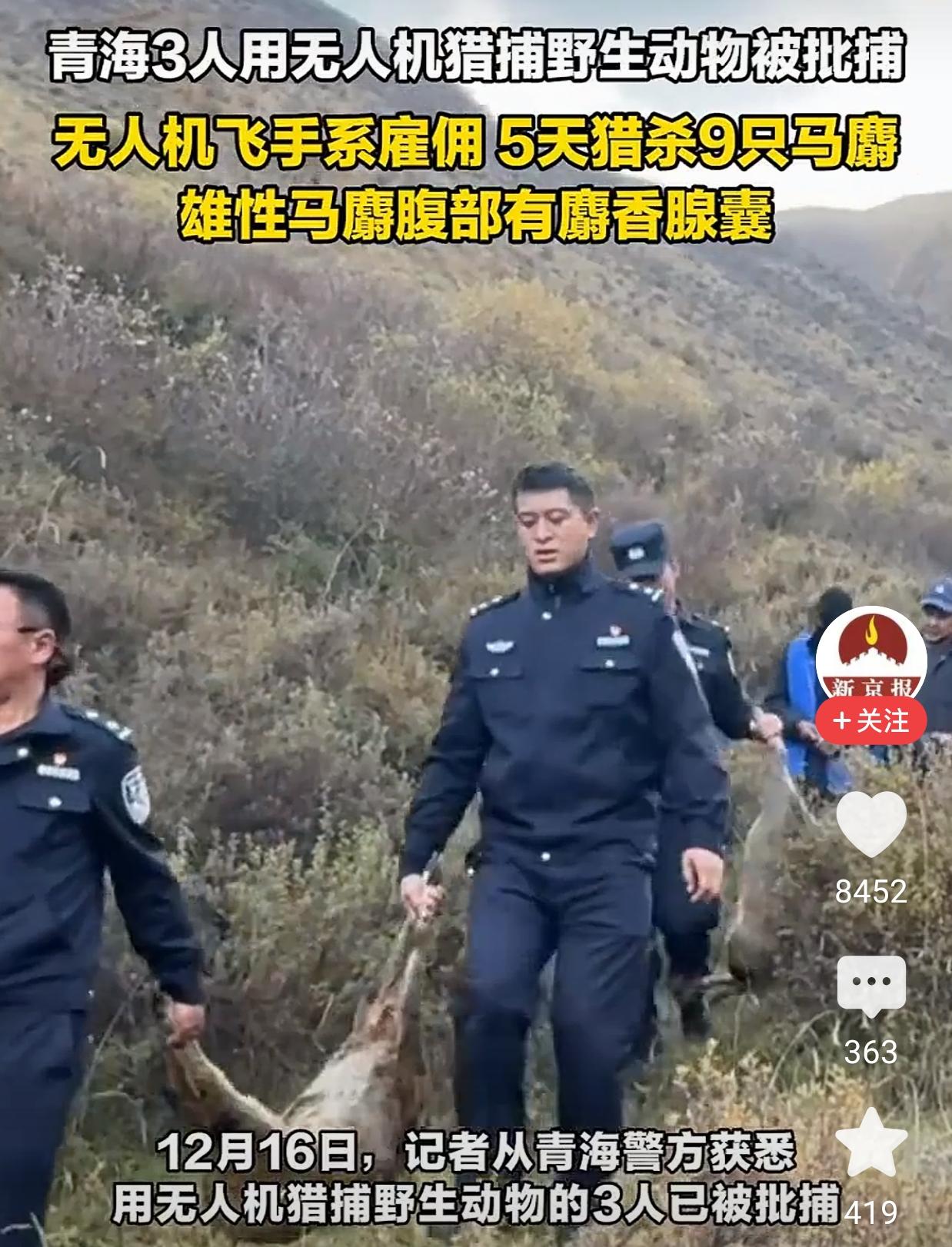 无人机成盗猎凶器!3人5天猎杀9只马麝,冰冷数据背后是生命悲歌 无人机的嗡鸣不该成为野生动物的丧钟!青海玉树这起盗猎案看得人咬牙——3人团伙用大疆无人机当"天眼",5天内疯狂猎杀9只国家一级保护动物马麝,只为割取雄性麝香,雌兽被随意遗弃,尸体在草原腐烂。 警方查获的352支不锈钢箭、4个麝香,背后是分工明确的"猎杀流水线":康某出资当"老板",钟某拿日薪1000元操控无人机搜捕,李某赚300元日薪动手割取。更令人愤怒的是,飞手钟某在重庆还犯有同类案件,是个惯犯! 马麝本就濒危,每只都是生态链的重要一环。这些人为了暴利,用现代科技对付无辜生灵,简直是对自然的公然挑衅。如今3人已被批捕,但9条逝去的生命回不来了。 盗猎者必须重罚!也请记住:没有买卖就没有杀害,抵制野生动物制品,才是对它们最好的保护。