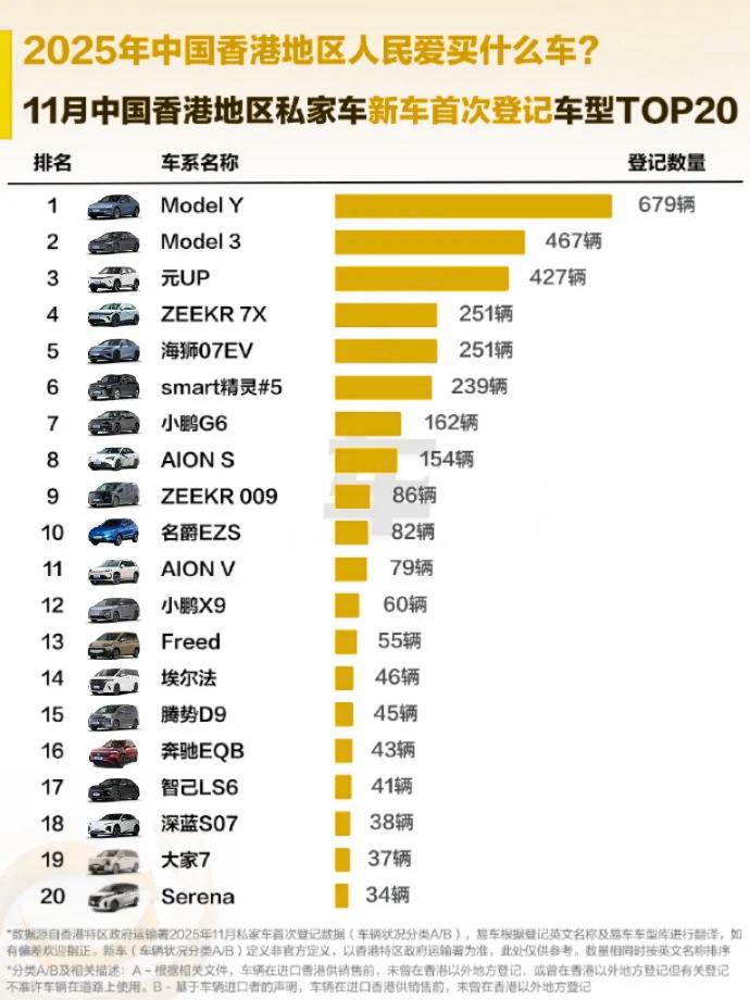 根据媒体最新统计数据,在11月中国香港地区的私家车新车首次登记品牌榜中,特斯拉稳