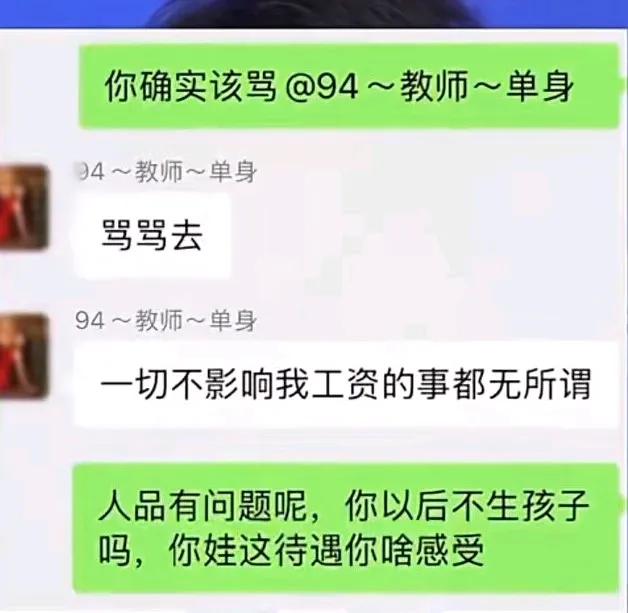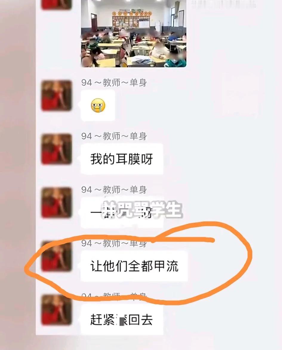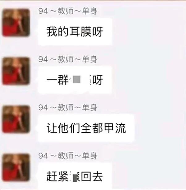 “让他们全都甲流”! 祸从口出,这个老师摊上大事了。 百人群里,女音乐教师公然诅咒自己班上小学生全部得甲流,也太恶毒了吧? 众所周知,甲流传染性强,症状严重,一旦感染非常痛苦,即使是调皮捣蛋的小学生也不能盼着人家孩子得病,更何况“全都甲流”? 孩子是祖国的花朵,正是活泼爱动的年龄,没有点爱心和耐心,这老师还真是别干了! 学博为师,德高为范,就因为如此,老师这个教书育人的职业在社会上尤其受人尊敬,一年四季,只有少数几个节日就有教师节,怎么有人这样糟蹋败坏教师的荣誉? 目前,这名女教师已经被停职,等待接受处理,以后想被孩子们吵恐怕还没机会了。 不仅是她的职业问题,也上升到人品了,未来她也是妈妈啊,怎么可以对娃没一点爱心和耐心? 这样的老师真该好好整整了,否则家长怎么放心得下?不仅孩子受委屈,更主要的是把孩子都带坏了,有样学样怎么办。