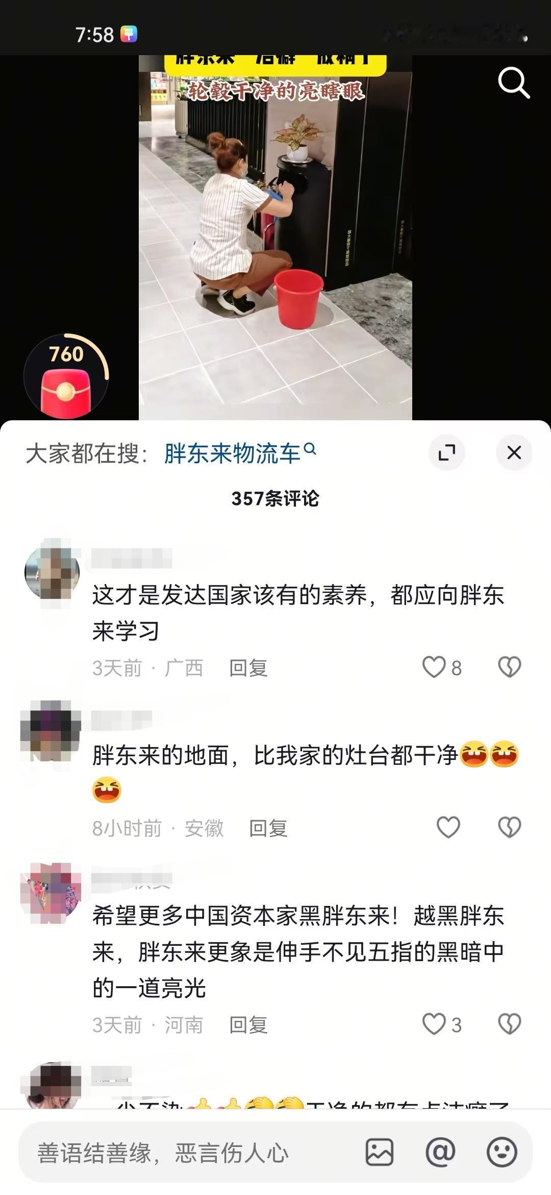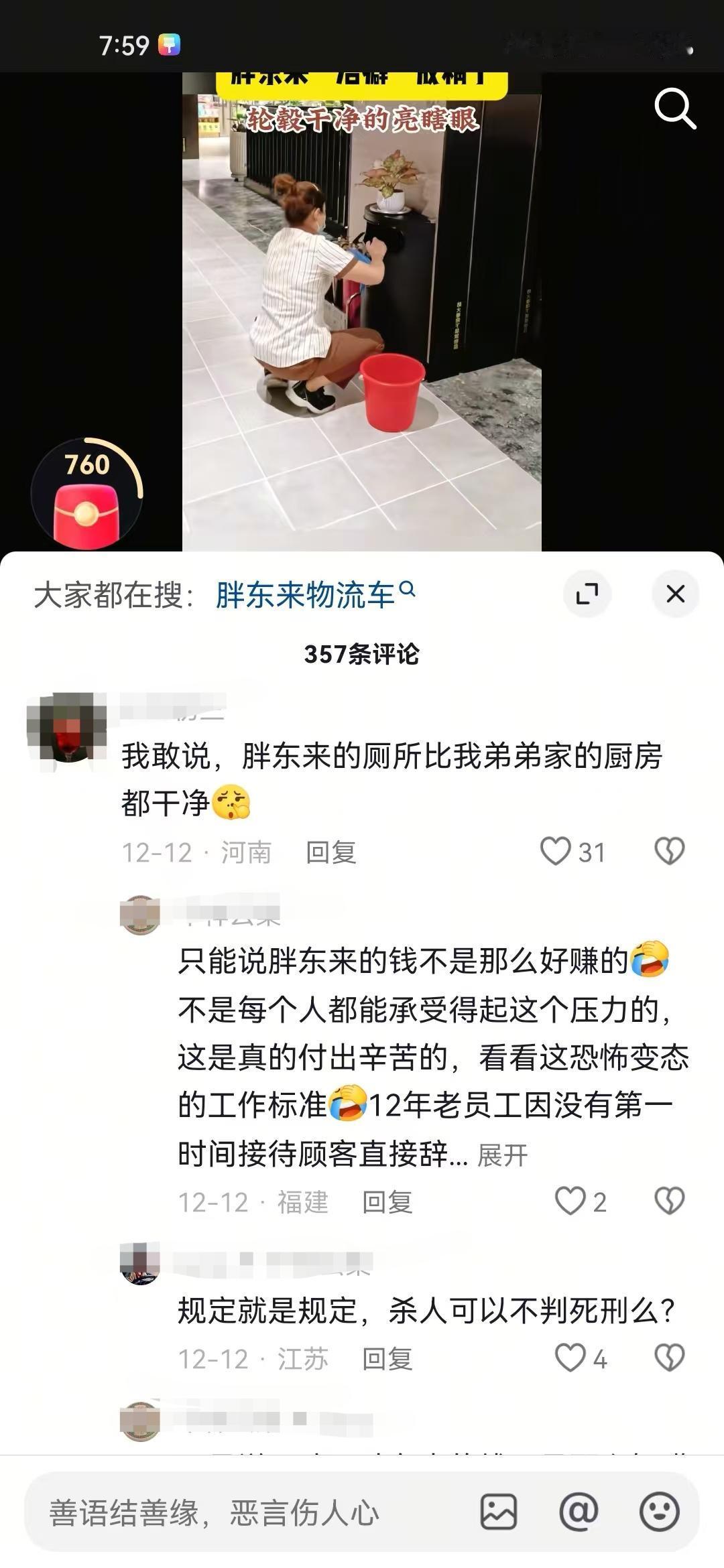 许多网友都在赞扬胖东来的卫生非常干净,有的说厕所比自家的厨房还干净,建议都应该向胖东来学习,我个人觉得卫生适当就好,太干净就需要员工上班时间一直维护,这样对员工来说是非常辛苦的。 许多网友也非常羡慕胖东来员工,认为胖东来员工工资高、假期多、上班时间短,进去上班等于进去享福。 然而事实真的如此吗?员工工资高是不假,平均工资在7000以上,一位工作十二年的老员工,在2021年被开除,显示她每月工资在4000左右,三年时间涨了好几千。 假期多其实称不上,胖东来员工对外宣传是有140-150天假期,然而真实情况是每周单休,年假30天,10天不开心假期,5天过年假期,总共97天,不过10天不开心假普通员工很难休到。 上班时间虽然短,但是工作量很大,一个员工工作量是其他同行的两三倍,看看每天人流量就知道了,每天非常多人去厕所,每个人都说卫生很干净,这就说明负责这一块的员工需要一直维护卫生,不能让顾客看到卫生差的情况。 所以,卫生干净好是好,不过得适当,不能为了卫生条件做到一尘不染,就得让员工从上班到下班一直保持紧绷状态,否则就违反了公司规章制度,扣分罚款就在所难免了。