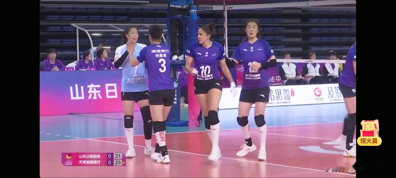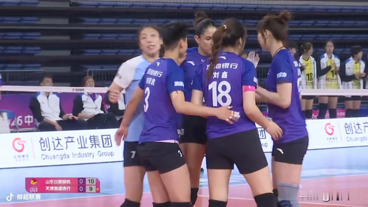 直播中排超联赛天津女排对阵山东女排 天津女排客场挑战山东女排 第一局天津女排25:21山东女排 天津女排出场阵容,主攻娜塔莉亚,刘美君,副攻马丁内斯,夏思佳,二传孟豆,接应刘鑫,自由人杨艺