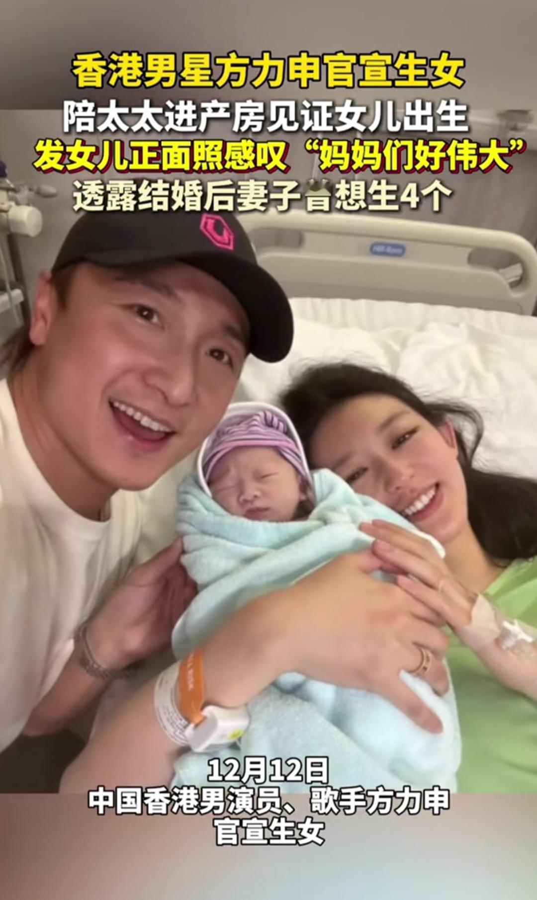 谁能想到,荧幕上的“阳光男神”方力申,当了爸爸后竟温柔成了这样?12月12日他官宣生女,产房里的一个个细节,把为人夫、为人父的深情展现得淋漓尽致。 方力申全程陪太太进产房,看着妻子阵痛难耐,他忍不住感叹“妈妈们好伟大”,还亲手为女儿剪下脐带,记录下女儿出生的每一个瞬间。他晒出女儿的正面照,满是初为人父的喜悦,还透露妻子婚后曾想生4个孩子,这份对家庭的期待格外动人。 从青涩的歌手演员,到扛起家庭责任的丈夫和爸爸,方力申的转变让人感慨。其实最好的爱情,从不是轰轰烈烈的誓言,而是在产房里握紧爱人的手,在新生命到来时,眼里满是珍视与温柔。愿这个小宝贝能在满满的爱意里长大,也愿每份真心的陪伴,都能被时光温柔以待。