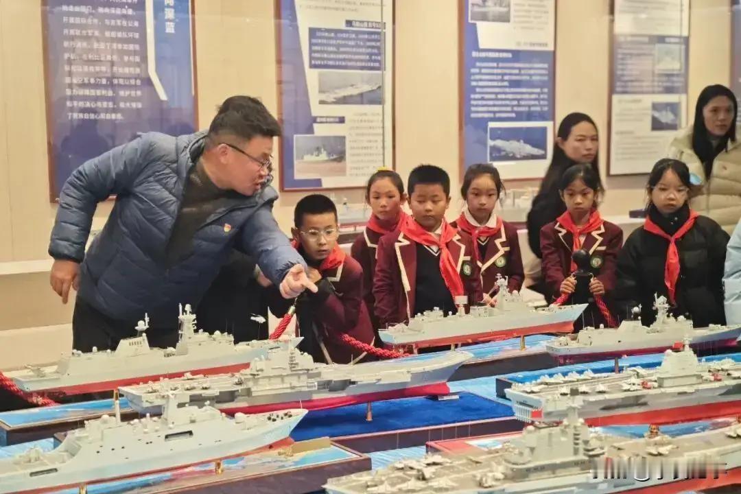 海安城南实验小学的老师们带着一批小学生,12月11日直奔当地博物馆,搞了个特别有意思的爱国教育活动!党员老师和少先队员们一起,沉浸式追寻家乡的红色足迹和历史文化,收获满满,自豪感爆棚。 一进馆,先看海军百年发展展,那些军舰模型和史料摆在那,从过去弱小到如今强大,三艘航母福建舰、山东舰、辽宁舰领衔,055大驱等先进战舰护航,祖国海防实力飞跃,让大家伙儿心里热乎乎的,忍不住为国家强大鼓劲。 再上楼,逛海安本地历史展区,古时候的陶器石器、五千多年前青墩先民的聪明发明,明清瓷器书画,还有革命先辈的手稿勋章,全都诉说着这片土地的厚重底蕴。海安人一直崇尚读书、踏实干活的精神,就藏在这些文物里,激励后辈继续发扬。 老师们现场讲军舰背后的强国故事,孩子们围着革命文物聊从过去到现在的巨变,大家互动热烈,爱国热情一下子就点燃了。老师们感慨,触摸历史才知道今天多不易,得把这份担当传给学生;孩子们兴奋地说,看到强大海军和家乡变迁,更要努力学习,长大守护国家。 这种带队建、师生同行的方式,太接地气了!在博物馆这所大课堂里,孩子们真切感受到民族记忆和地域骄傲。结合当下中国海军迅猛进步,海安这样的地方教育,正是培养有根有魂新一代的关键一招,值得多来几次,让红色基因代代传!