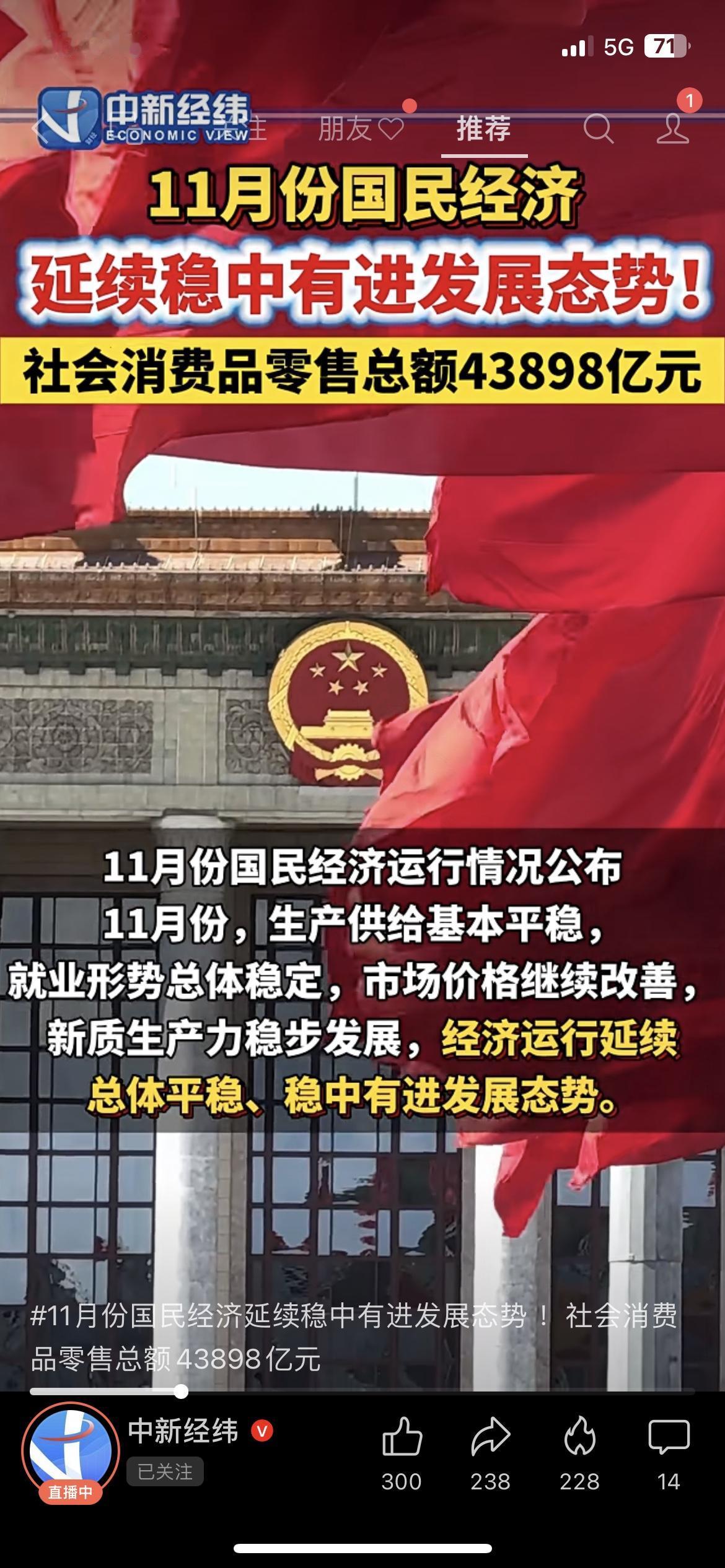 别忽略!11月经济数据出炉,消费零售超4万亿 平时关注经济的朋友注意了,官方刚发布11月国民经济数据! 社会消费品零售总额43898亿元,工业增加值同比涨4.8%。 其实很简单,我家楼下的商场最近餐饮区天天排队,就是消费回暖的直观体现。 咱普通人能感受到的,就是市场里的烟火气越来越浓了。 你觉得身边的消费市场变热闹了吗?评论区唠唠~