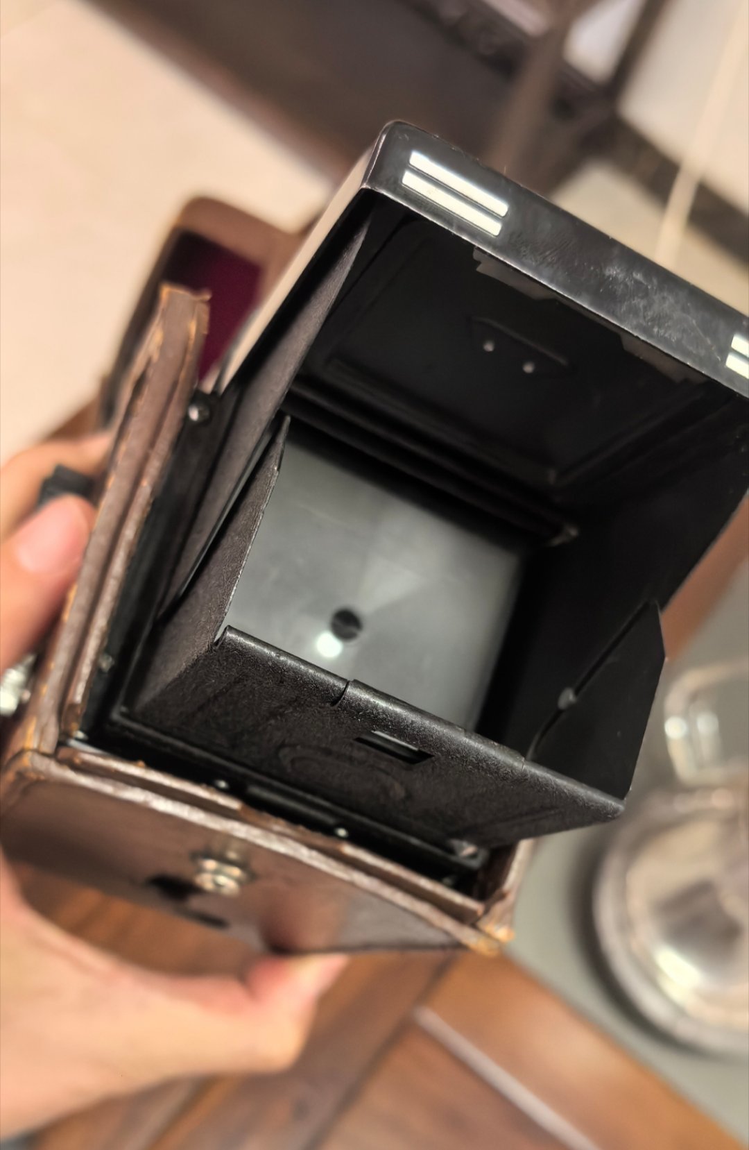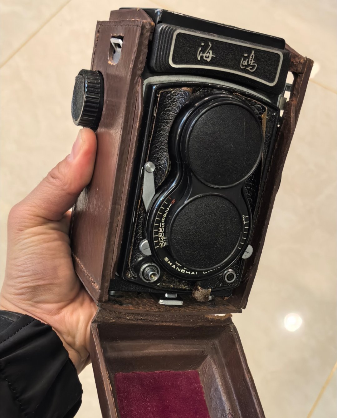 相机 海鸥4型双镜头反光相机,1963年投产至1967年停产 专业型120中画幅胶片相机,焦距75mm,光圈F3.5-F22光圈,毛玻璃俯视取景器,存在视差调节和影像左右颠倒特性,1-1/300秒镜间快门、B门及8-12秒延时自拍,摇把式卷片实现自动停片计数。和初代保时捷911 同年代。