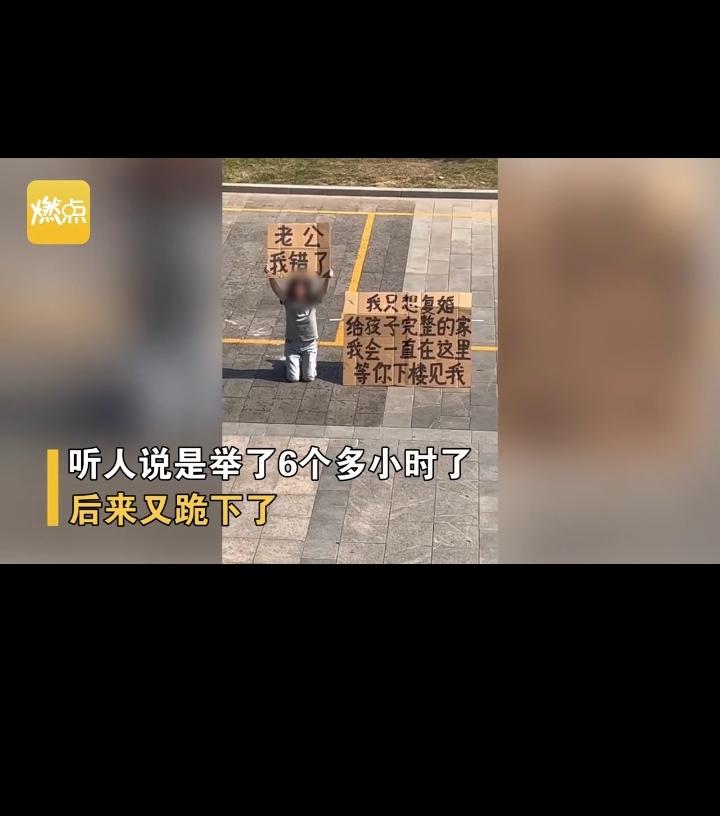 网友发视频显示一女子在丈夫单位门前当众举牌下跪认错,听说一直举着道歉牌子跪了6个多小时!女子当众下跪这么长时间,看来是真心悔改了!若是真心,在以后要用实际行动和真心感动对方!是男人应该给她一次机会!