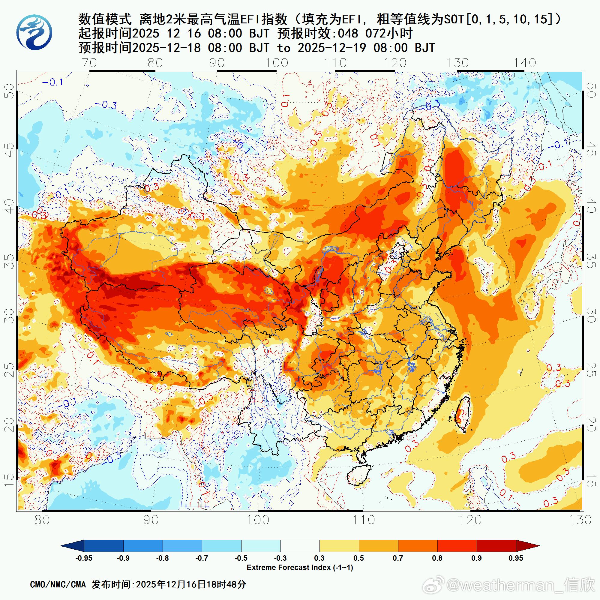 【气温破纪录】今天甘肃和陕西有16个站点气温打破12月中旬最高纪录。未来随着高空暖脊东移,我国多地气温偏高,尤其是19日,黑龙江、江苏、安徽、湖北、湖南部分地区,可能出现成片破纪录的情况。