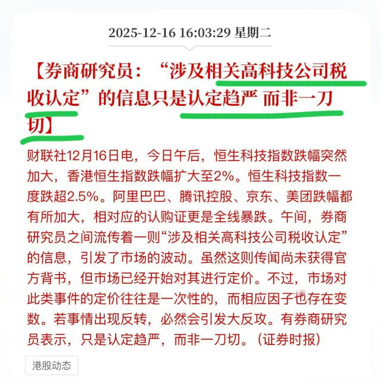 券商研究员:“涉及相关高科技公司税收认定”的信息只是认定趋严,而非一刀切。