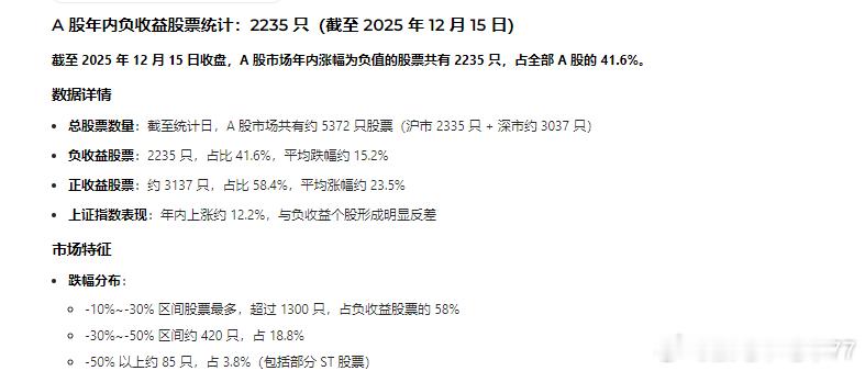 截至昨天年内总涨幅为负值的股票已经有2000多家了于此同时今年指数上涨10多个点
