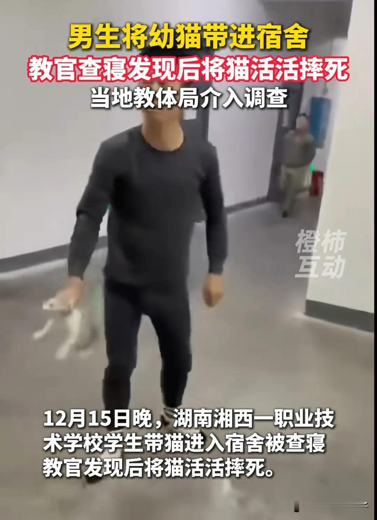 真相了!看到教官摔猫事件的第三视角,原来坏的人不止教官,养猫的那个学生更可恨,如果他在乎小猫,就不会举着手机不断刺激对教官说:你摔一个试试!看这学生的动作和表情,也不在乎小猫的生命,只是单纯的不服管教而已! 学生要是说,你杀一个人试试,他还得试试?他可以直接处分学生,猫就因为没有保护,就可以沦为他虐杀、泄愤的对象? 教官是冲动,但学生确实是坏,根本不在意小猫的死活,就是要挑战教官的威信。 无论是什么结果?把猫咪摔死了,就是个恶魔,恶魔在人间。 看了官方调查更气!小猫才几个月大,学生还哭着求情,教官根本不管,硬摔死还撒谎,这哪是管理,就是残忍,洗不白的~