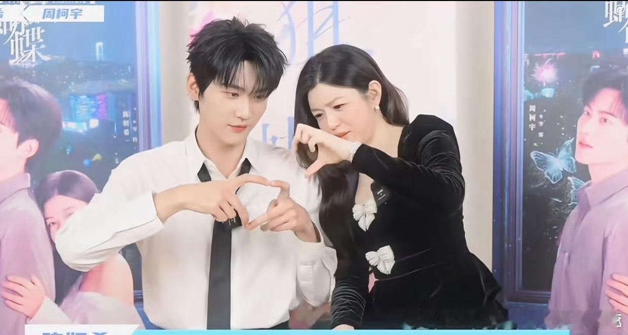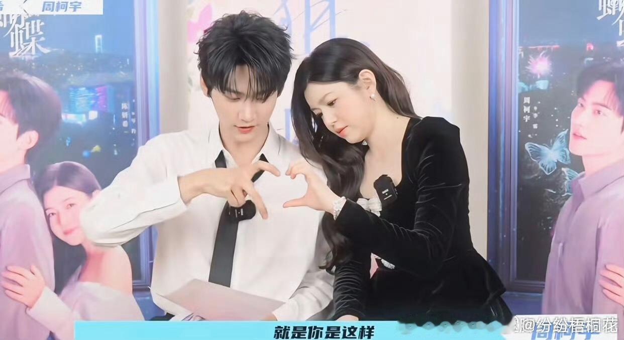 周柯宇和陈妍希比心害羞了感觉他俩CP感不强呢,男生是00后的花样男女生是8090女神诶