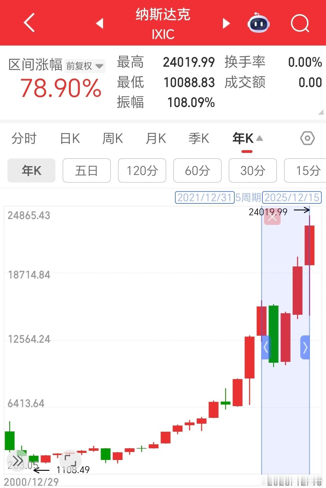 五年前投资100万能挣多少要看在哪个市场上了如果在2020年底买,买创业板指不如存款利息,买纳指接近翻倍