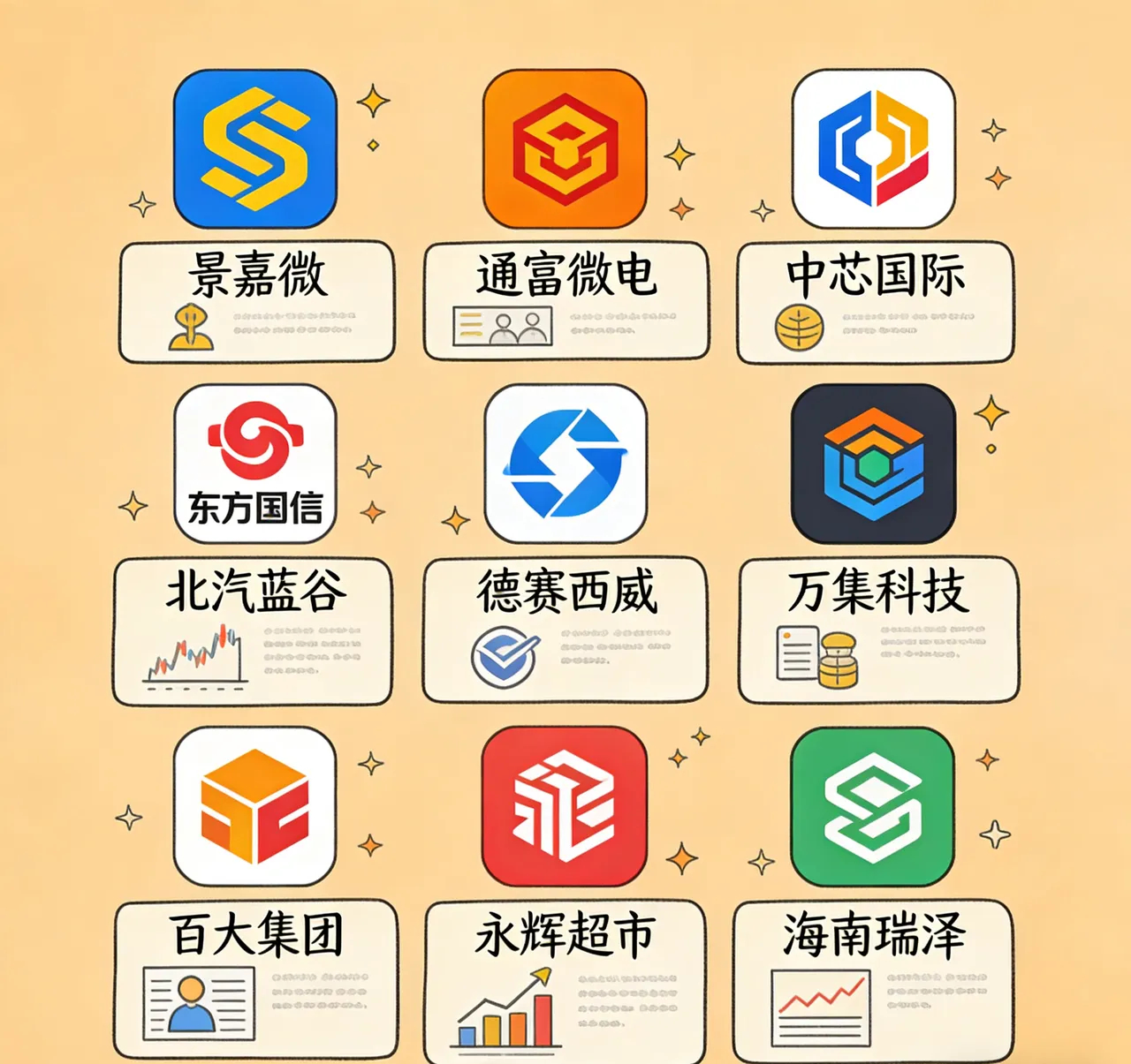 🔥 明日10大潜力股 核心逻辑一句话速记1. 景嘉微:国产GPU龙头+业绩暴增+超卖反弹2. 通富微电:沐曦封装+Chiplet技术+30日线支撑3. 中芯国际:12nm流片+晶圆龙头+60日线企稳4. 东方国信:持股沐曦8%+政务代理+资金回流5. 北汽蓝谷:L3准入+60亿定增+涨停抢筹6. 德赛西威:L3域控市占率40%+20日线支撑7. 万集科技:激光雷达龙头+20cm涨停+L3红利8. 百大集团:零售3连板+杭州商超+资金抱团9. 永辉超市:消费贷贴息+平台突破+内需回暖10. 海南瑞泽:海南混凝土龙头+基建订单+封关红利A股潜力股芯片半导体智能驾驶大消费