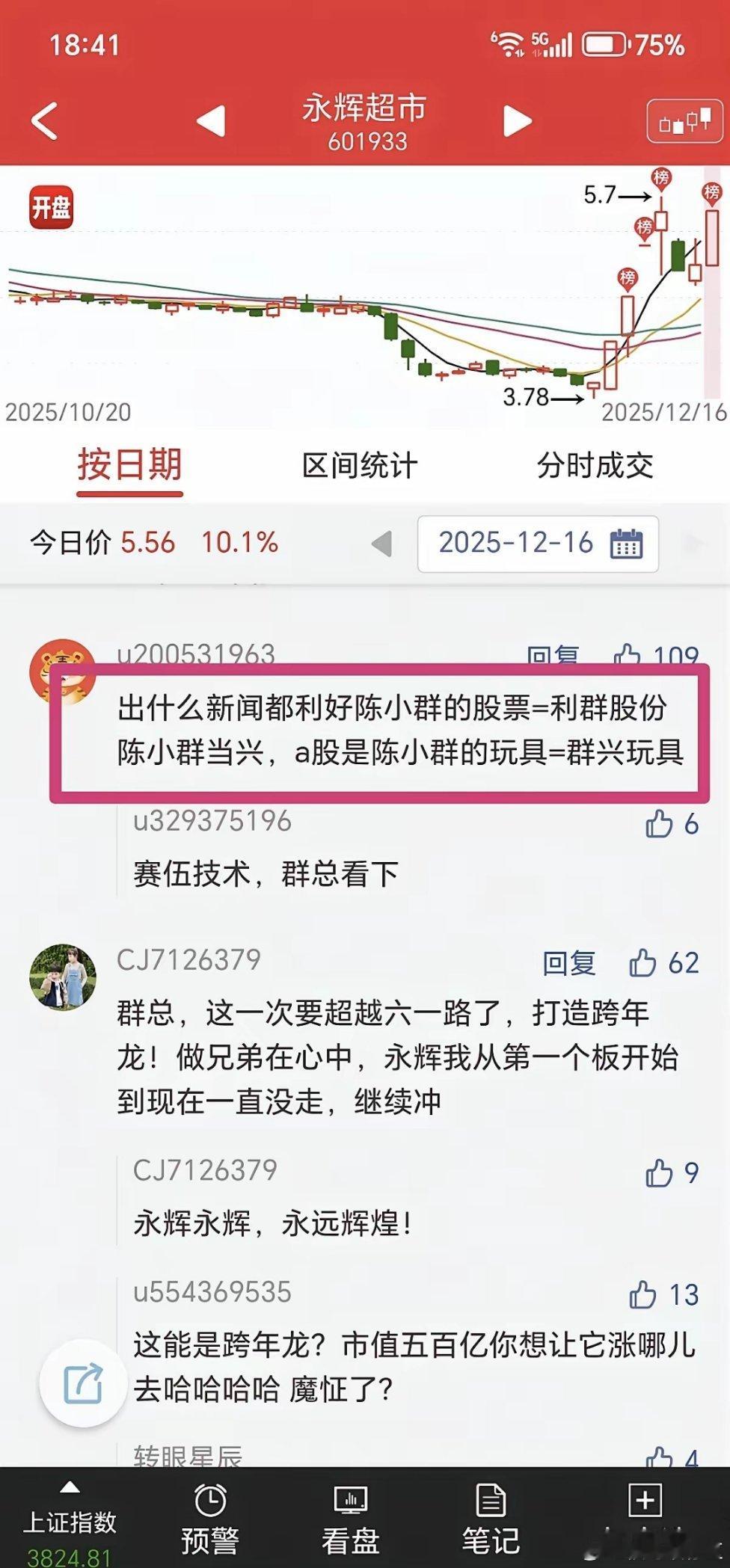 陈小群今天3.95亿打进了永辉超市,龙虎榜的评论区这条留言亮了:出什么新闻都利好陈小群的票(这是昨天的梗),所以利群股份今天也涨停了。网友又挖出了群兴玩具,明天也要同款涨停?这也太魔幻了。