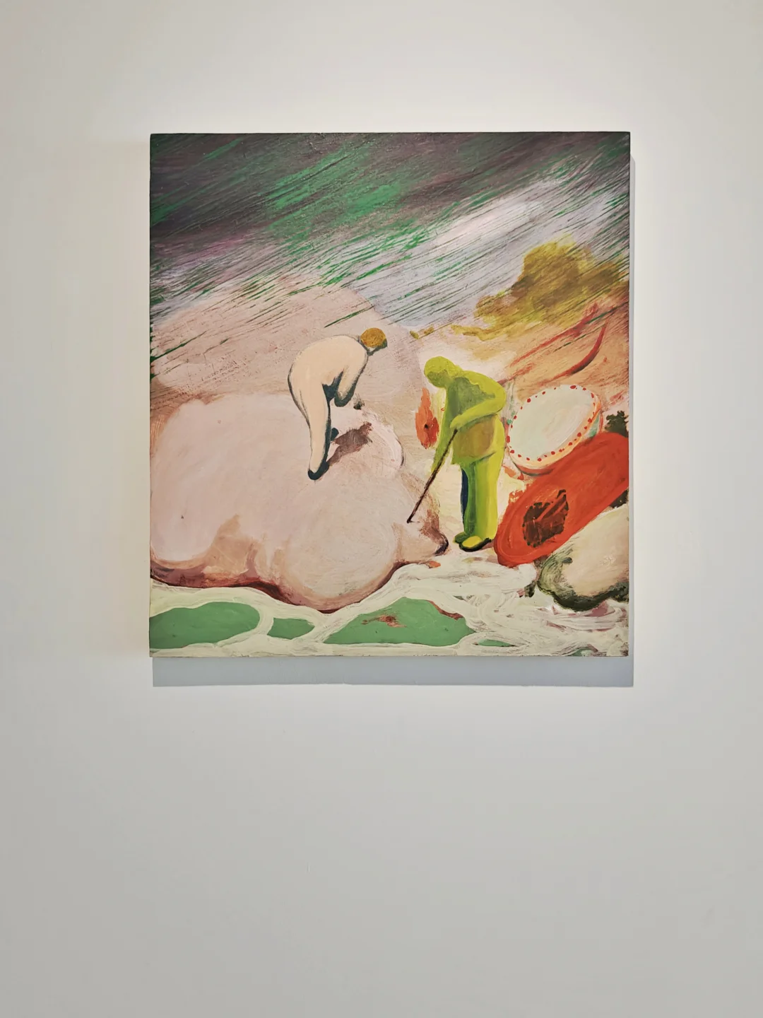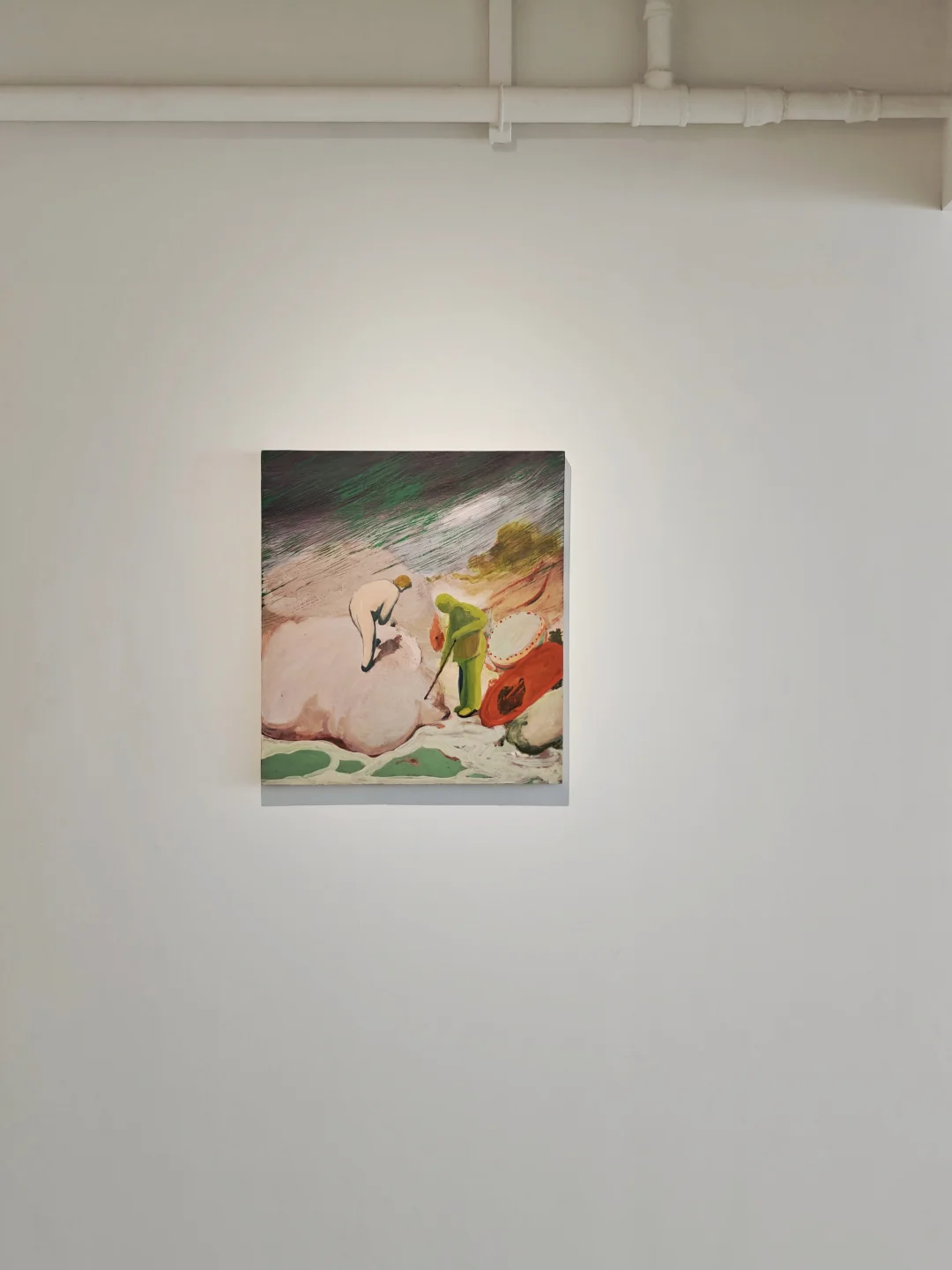 画面沉静内向,充满精神张力。作品融合具象与抽象,以饱满色彩和直觉性笔触捕捉山野劳作、舞者旋转等场景,不强调叙事,而是通过色彩、光线构建游离现实的精神性观看场域