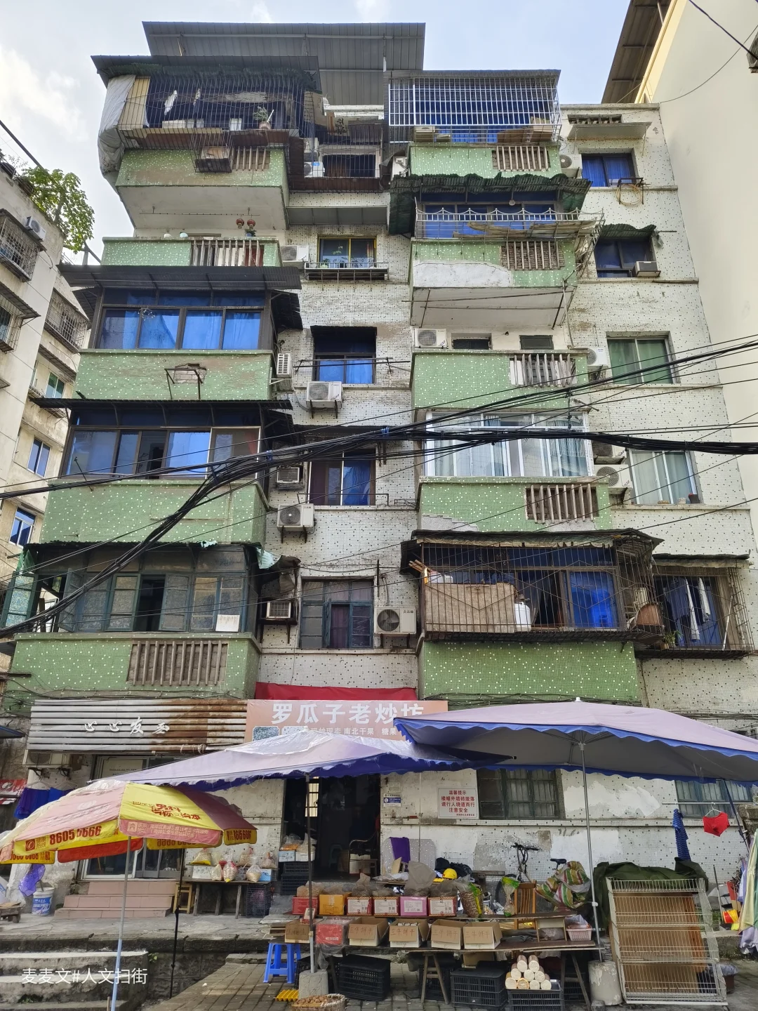 花溪新村,藏在重庆市巴南区李家沱正街的老街小巷里,一走进就能看见一片老式居民楼。斑驳的外墙爬满藤蔓,楼梯间的绿漆扶手磨得发亮。这些上世纪八九十年代建成的老家属楼,楼层不高,却承载着几代人的生活痕迹。 走进其中一个老家属院,楼与楼之间挨得很近,晾衣绳横跨小巷,五颜六色的衣服在风里摇晃。楼道里堆着旧纸箱、竹椅,偶尔能听见邻里间的寒暄声。这里的住户大多是老居民,或是租住的上班族,生活节奏缓慢而踏实。