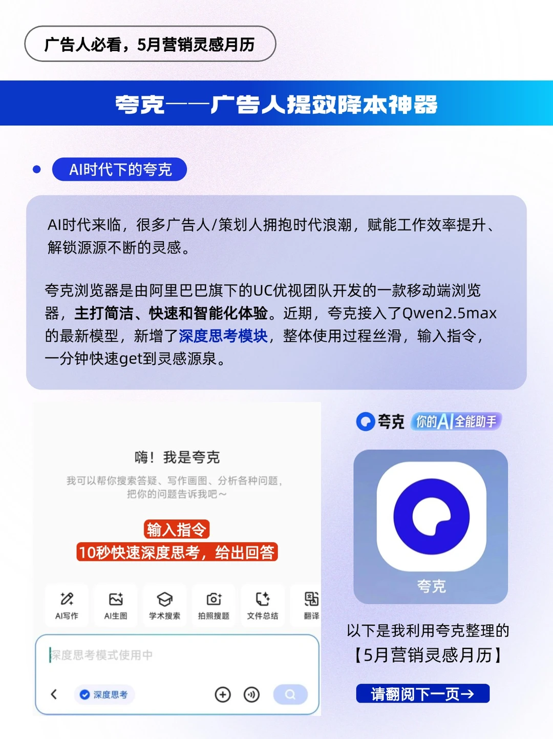 看到这份5月营销灵感月历,不得不说,夸克的思路太让人惊艳了~🫡