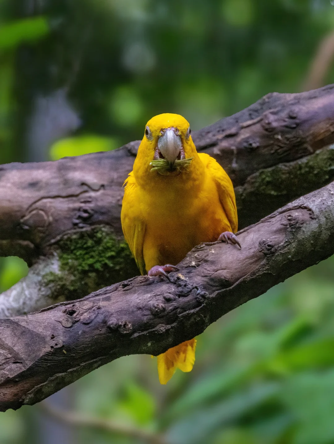 原创拍摄 金鹦哥,鹦形目鹦鹉科金鹦哥属。 这种超级漂亮的鹦哥,全身主要是纯纯的金色,带绿色的飞羽,金灿灿的。 他们现在只分布于巴西亚马逊平地的狭窄区域,甚至只在季节性洪水林可以看到,只在托坎廷斯河、下欣古河和塔帕若斯河之间。目前数量已经很稀少,据说只有几千只。
