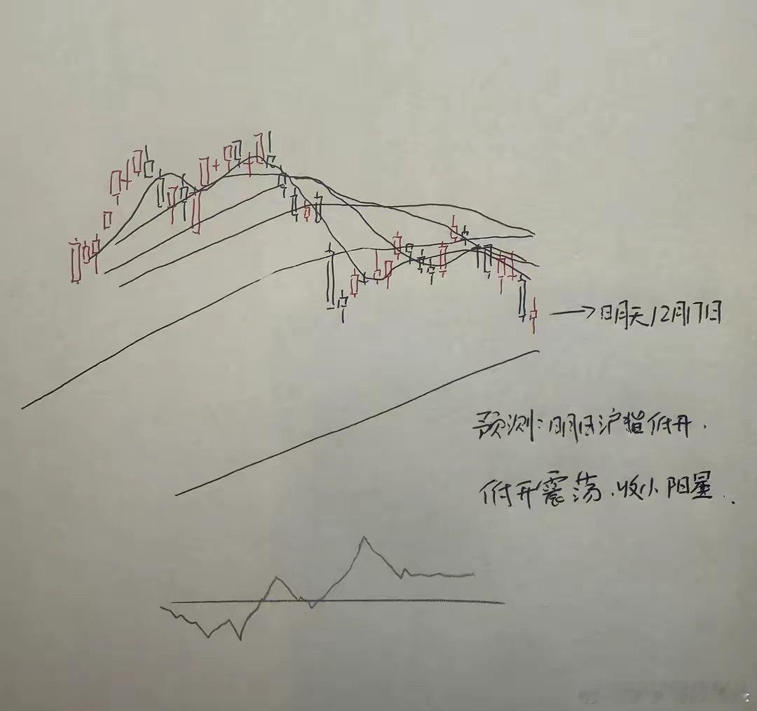 明天A股怎么走?到底是涨是跌?莎莎哥做了一个大胆的预判,大家听莎莎哥讲三个具体理由第一,今天市场的最低点,3815点,这个点位是上周莎莎哥就和大家讲到的,上证指数可能的头肩顶结构的颈线位置大家请看图一。头肩顶颈线位置在3816点附近。今天市场就是基本上跌到了这个点位。这个点位本身就有强支撑。除了这个点位之外,3815点的最低点,离3800点的整数关口也非常的接近了。3800点的整数关口,也是非常重要的支撑点。而且更为重要的是,当前点位离底下的120日均线的支撑也非常的接近了。120日均线的支撑位在3774点附近。所以既然已经接近3800点,那么也就没有什么好恐慌的了。强支撑就在当前。第二,今天市场虽然全线深调,而且待涨的家数有4300多家,但是今天市场在下跌的过程当中,并没有出现放量大阴线。所以“缩量下跌”,总是比“放量大跌”要好一些的。因为缩量的情况下,意味着主力可能还没有真正的大规模出货,缩量大阴线,有可能意味着依然处于震荡洗盘的过程。第三,从时间关系上看,本轮指数从8月份开始,上证指数就有一个非常重要的规律。每一个上涨和下跌的小波段,几乎都是以7天或者8天作为时间周期的 。今天从阶段的小高点到目前为止,已经运行了7个交易日,莎莎认为明天很有可能就是见底的第8天。所以综合以上分析,我对于明天市场的走势做出了相对乐观的判断,莎莎认为明天上证指数或者能够走出短线止跌的十字星的信号。那么明天A股到底怎么走?大家请看图二关于明天走势莎莎手绘预的测图:莎莎还想给大家补充一点的是,今天市场的调整完全在莎莎的预期之中,因为跌到3816点附近,是莎莎在上周就和大家反复强调的,市场的调整目标位。但是既然当前已经到达这个重要的目标位,我自然也就认为市场要出现短线的反弹。可是这个时候我发现,很多朋友却看到更低的3700点了。我觉得这种看法确实又过分的悲观了一些。并不是说完全排除3700点,但是莎莎认为至少不是现在,至少在今天之后,我先看市场应该有一个小反弹,我们不妨拭目以待。兄弟朋友们点赞,评论加关注就是对我这个纯技术派的最大支持。
