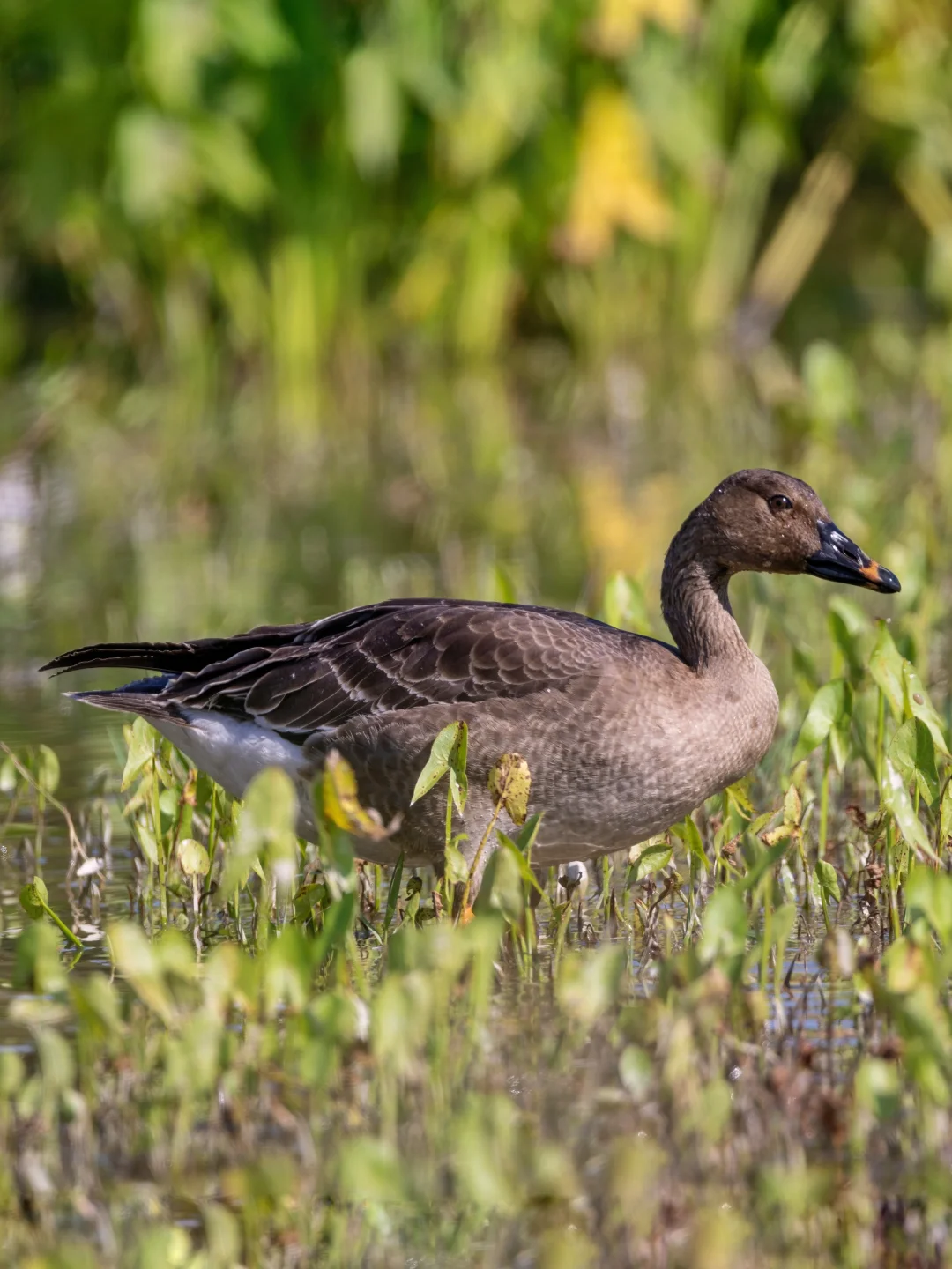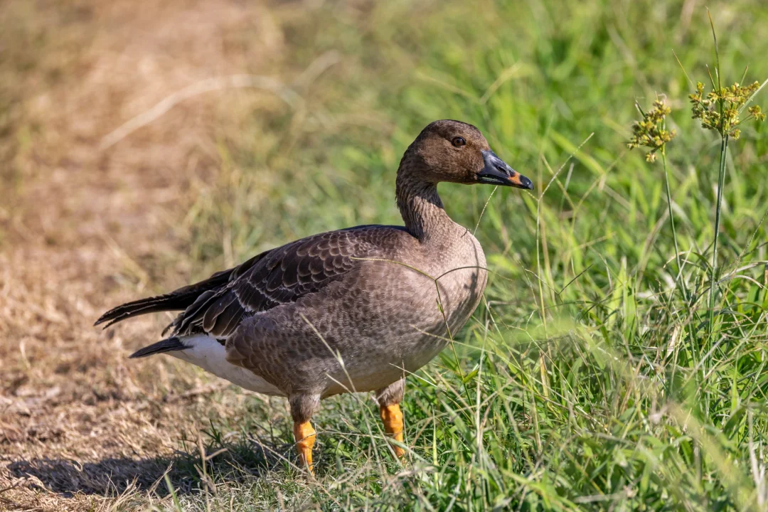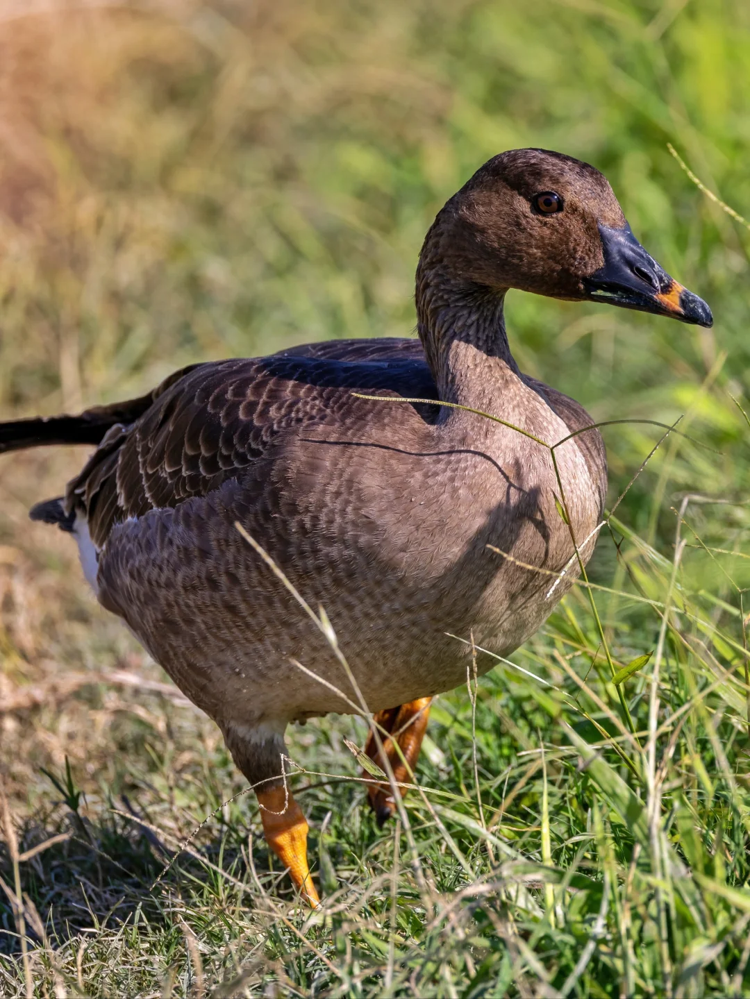 原创拍摄于2024.11 短嘴豆雁,雁形目鸭科雁属。一只烟灰色系的大“鹅”。它们和豆雁很相似,喙上都有一条橙色带,不过短嘴豆雁的喙大部分为深色,橙色带很狭窄,而豆雁的喙上橙色较大块。当然短嘴豆雁的喙更短、更厚实,不过单独看不太明显。 以前在其他地方见到的短嘴豆雁都挺怕人,就远远看看,没想到这只迁徙到香港湿地的短嘴豆雁如此心大,一群人就三五米围观,简直是怼脸拍,太可爱了,希望它能够平安的度过这个冬天吧。