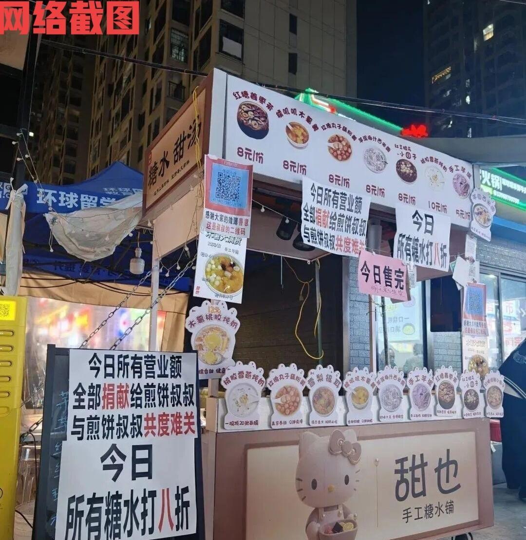福建师大旗山校区小吃街的爱心接力。 这是因在小吃街有位商户被确诊身体健康危机,于是妻子发朋友圈希望得到帮扶,由此有师大学生的转发,而有了传播的力量得到了众人的响应,小吃街上十八家摊位在后续的四天接力,为这名商户的医治筹款,学生们也是热情支持,最终筹的善款六万。 这里看到无论是小吃街其他商户,还是同学们都在用自己的方式,表现出自己帮助,其他商户们直接用上了身体危机商户的收款码,而学生们直接在身体危机商户的收款码扫描付款,表示自己的支持,以这样的消费方式展开了关爱与帮扶。 正因为有同学们与其他商户的支持,看到这条小吃街存在这个冬天的温暖与友爱,由于有这群可爱的同学们,还有这众多的商户们背后给出的帮助,让身体危机的商户颇为感动,说出谢谢这么多人带给他的帮助。 一次感人的爱心接力,我们感受温暖的人情魅力,众多人的帮扶下我们的世界一直很美,众人的力量克服了阻碍我们看到希望的坎坷,于是这一路我们越走越顺,因为永远有一群有爱的人在身边存在。