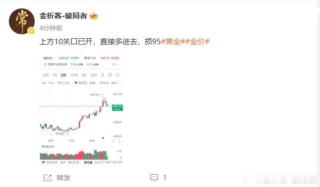 实时布局黄金4056空单最低给到51位置斩获50点利润没提醒大家减仓,后续强势上
