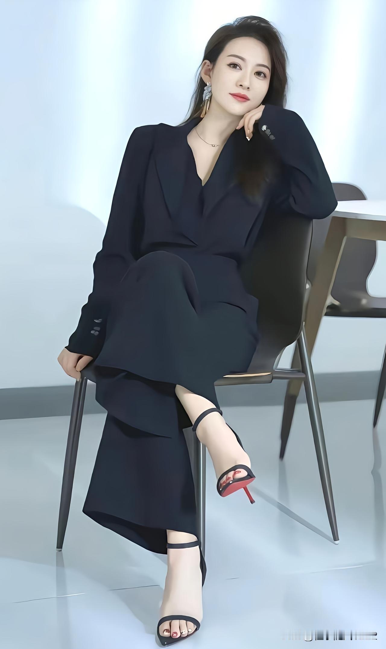 优雅职场风,黑色西装搭配高跟鞋,自信满满