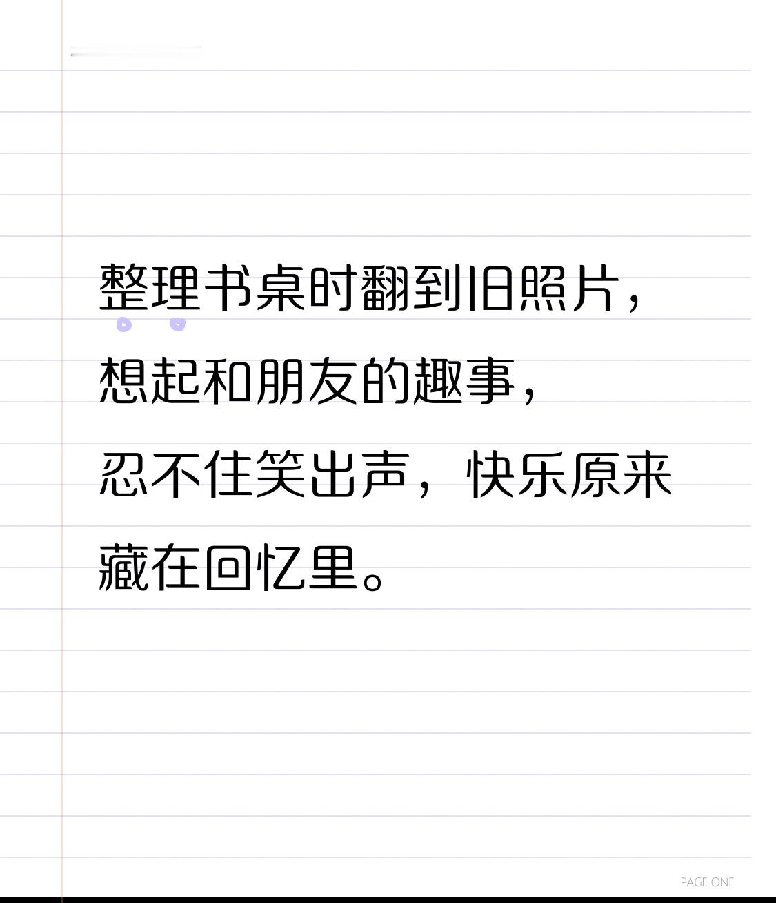 整理书桌时翻到旧照片,想起和朋友的趣事,忍不住笑出声,快乐原来藏在回忆里。