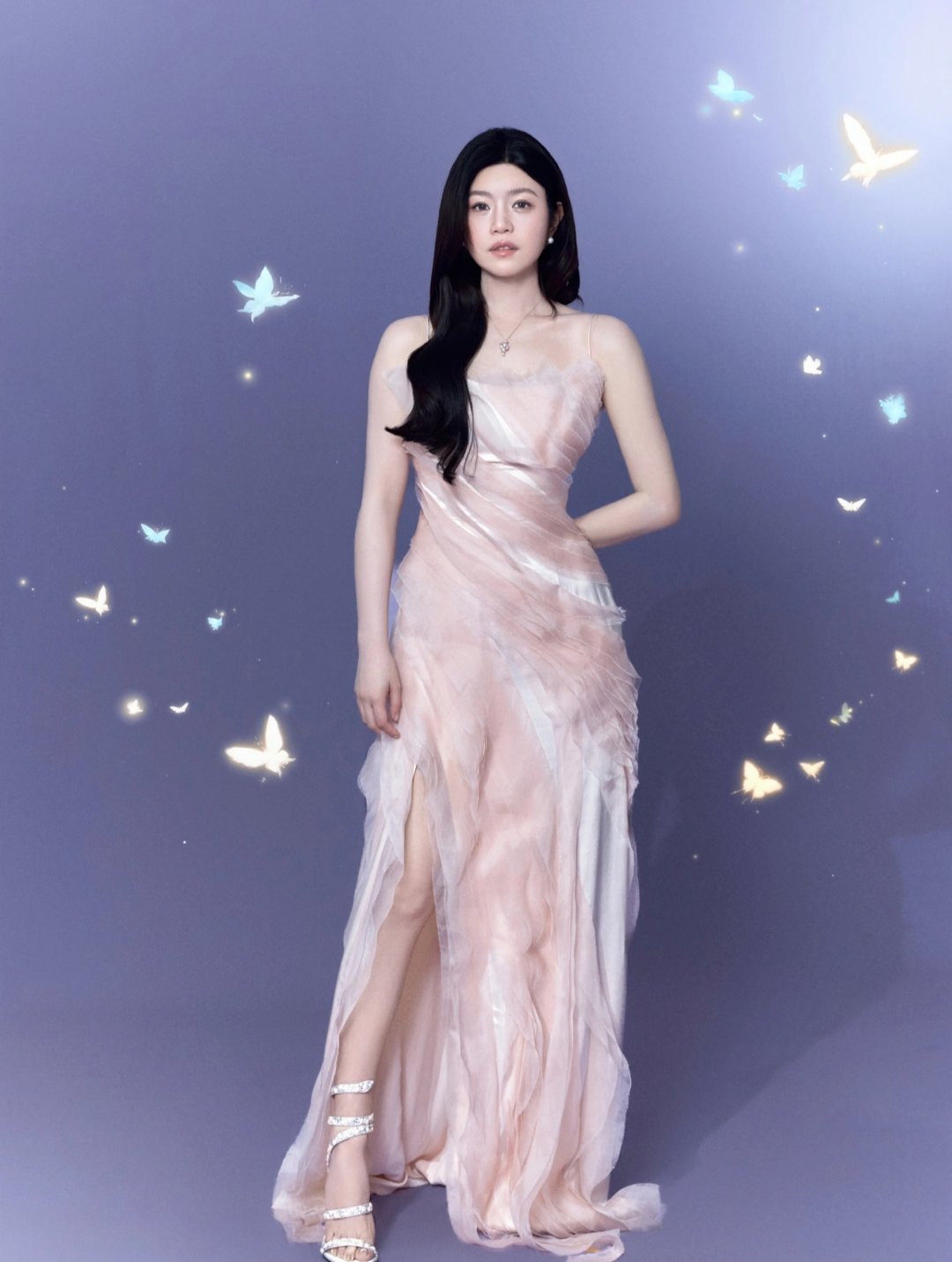 陈妍希蝴蝶系列写真粉色礼服成熟轻甜气质~