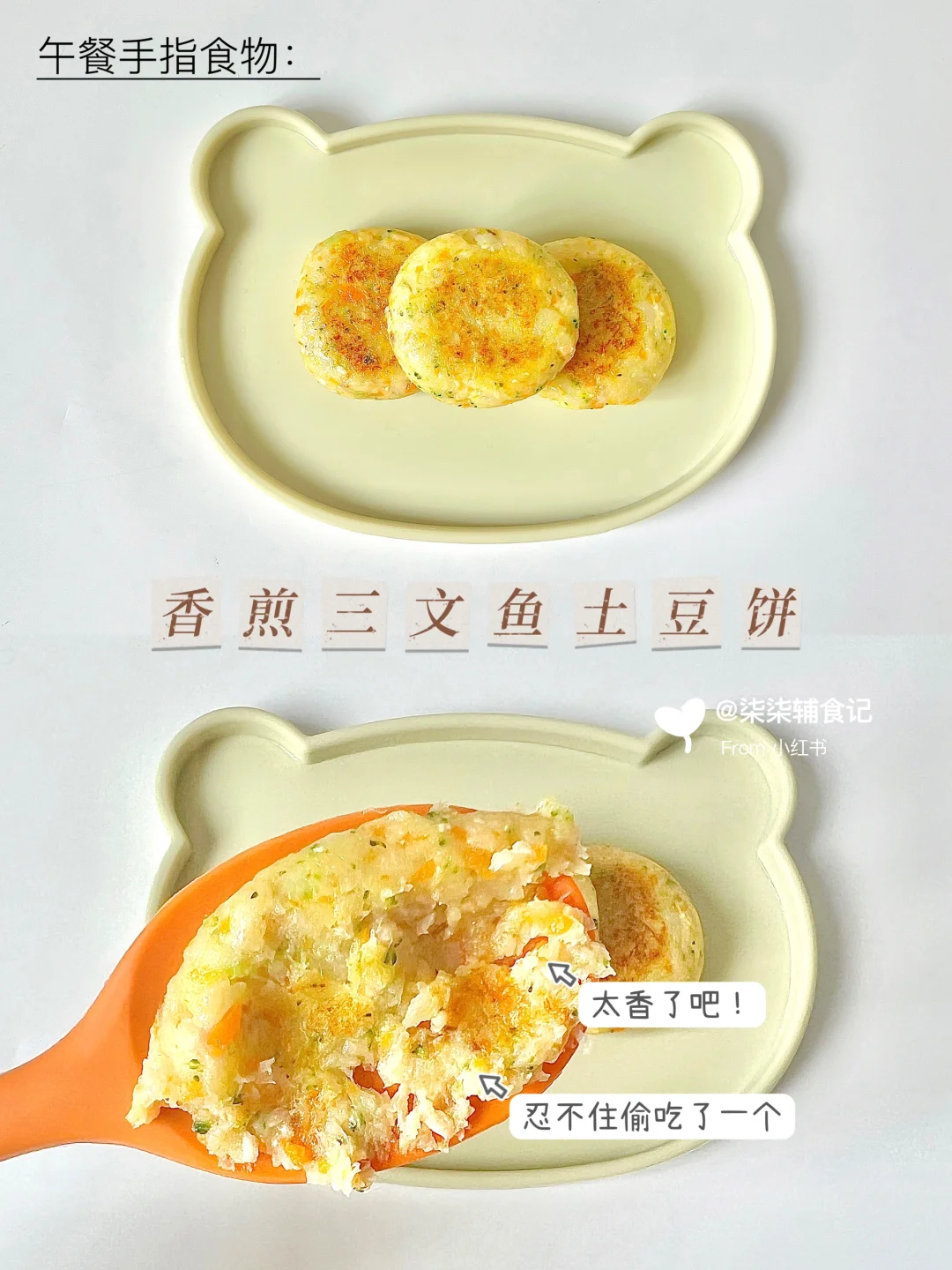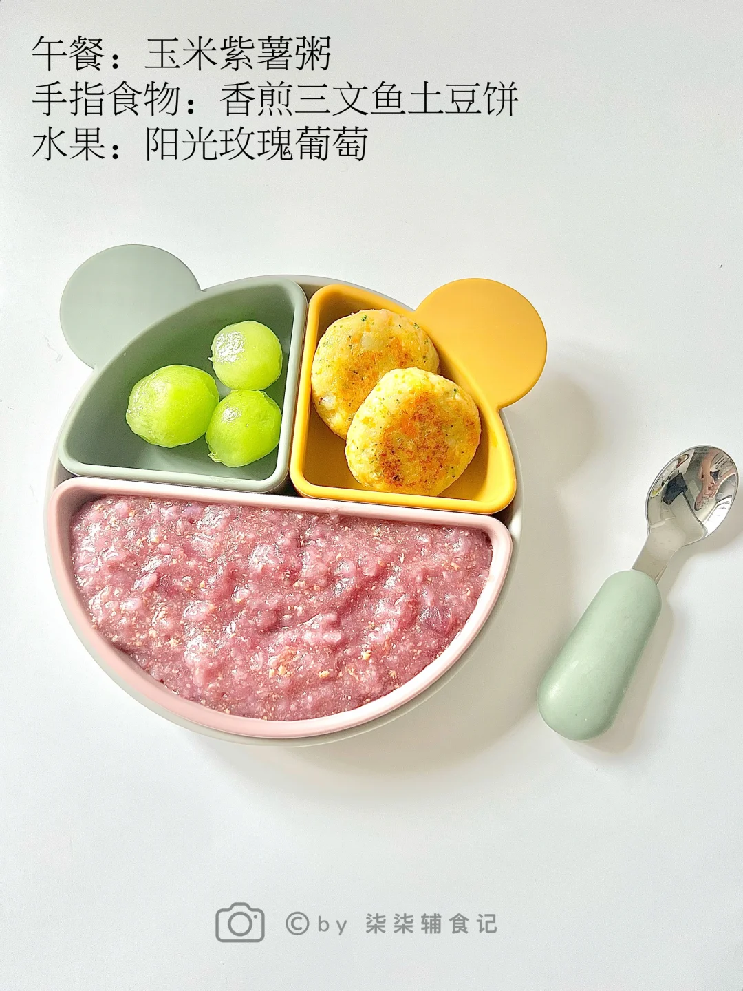 👧:9个月➕21天 ⏰:午餐11:30 🥣:玉米紫薯粥 🤌:香煎三文鱼土豆饼 🍽️:水果:阳光玫瑰葡萄 ⏰:晚餐18:00 🥣:南瓜胡萝卜浓汤面 午餐玉米紫薯粥和三文鱼土豆饼…三文鱼土豆饼真的好好吃啊🤤柒柒都吃了两块,粥也全部吃光光,太棒啦![赞R][赞R]剩下两两块全被我吃掉了嘿嘿[萌萌哒R][萌萌哒R] 晚餐南瓜胡萝卜浓汤面,煮了这么多浓汤面,就没有一款不好吃😁你们也快去安排给宝贝吃吃! 柒柒今天也有在乖乖吃饭呀! ⚠食材分量根据宝宝的食量添加。 ⚠️食材大小根据宝宝的咀嚼能力处理。