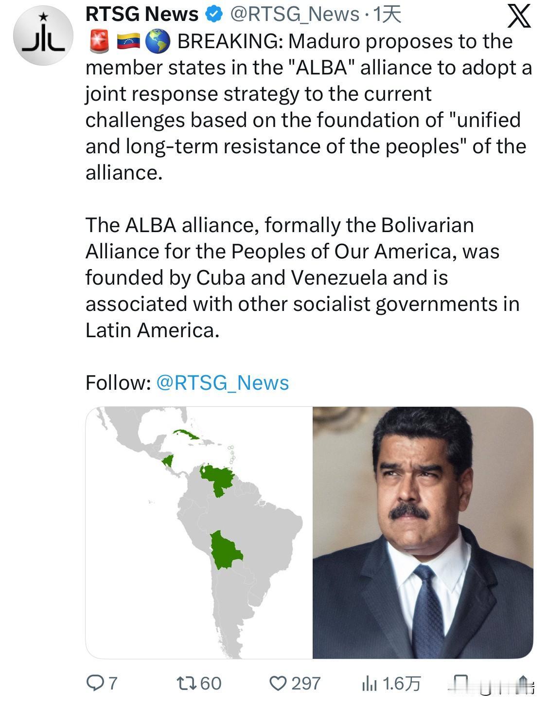 突发新闻:马杜罗提议“玻利瓦尔美洲联盟”成员国采取联合应对当前挑战的战略,该战略以联盟“人民的统一和长期抵抗”为基础。 美洲玻利瓦尔联盟(ALBA),正式名称为美洲玻利瓦尔人民联盟,由古巴和委内瑞拉创立,并与拉丁美洲其他社会主义政府有联系。 美洲玻利瓦尔联盟(ALBA,西班牙语:Alianza Bolivariana para los Pueblos de Nuestra América,意为“我们美洲人民的玻利瓦尔联盟”)是一个拉丁美洲及加勒比地区的政治、经济及战略同盟,旨在促进区域一体化,并对抗美国主导的美洲自由贸易区(FTAA)。 历史背景与目标 起源:该联盟的前身是“美洲玻利瓦尔选择”(ALBA-TCP的前身),由委内瑞拉前总统乌戈·查韦斯于2001年12月首次提出倡议。 正式成立:2004年12月,查韦斯与古巴领导人菲德尔·卡斯特罗签署联合声明,正式创立该组织。 更名:2009年6月,该组织正式更名为“美洲玻利瓦尔联盟”。 宗旨:联盟以南美洲解放者西蒙·玻利瓦尔命名,强调国家而非市场的作用,主张走内生发展道路,将消除贫困和社会排斥作为核心目标,谋求创造具有灵活性的合作机制。 成员国 虽然成员国数量有所变化,目前该联盟主要由以下国家组成(但具体的当前成员名单需要核实,以下是历史上的主要成员国): 委内瑞拉 古巴 玻利维亚 尼加拉瓜 多米尼克 厄瓜多尔(曾加入后退出) 圣文森特和格林纳丁斯 安提瓜和巴布达 苏里南 圣卢西亚 格林纳达 圣基茨和尼维斯 主要倡议与合作领域 ALBA的合作涵盖经济、政治和社会等多个领域: 经济领域:推出地区记账单位“苏克雷”(Sucre),并成立美洲玻利瓦尔联盟银行等金融机构。 社会领域:在教育、医疗和消除贫困方面取得了显著的社会发展成就。 政治领域:成员国积极协调外交政策,在重大地区和国际问题上采取共同立场,例如谴责美国对成员国的单方面制裁或干涉。 挑战 该联盟的发展面临一系列挑战,包括过度依赖特定成员国(如委内瑞拉)的石油经济、内部成员国政治经济形势的变化以及联盟理论与实践的脱节等。