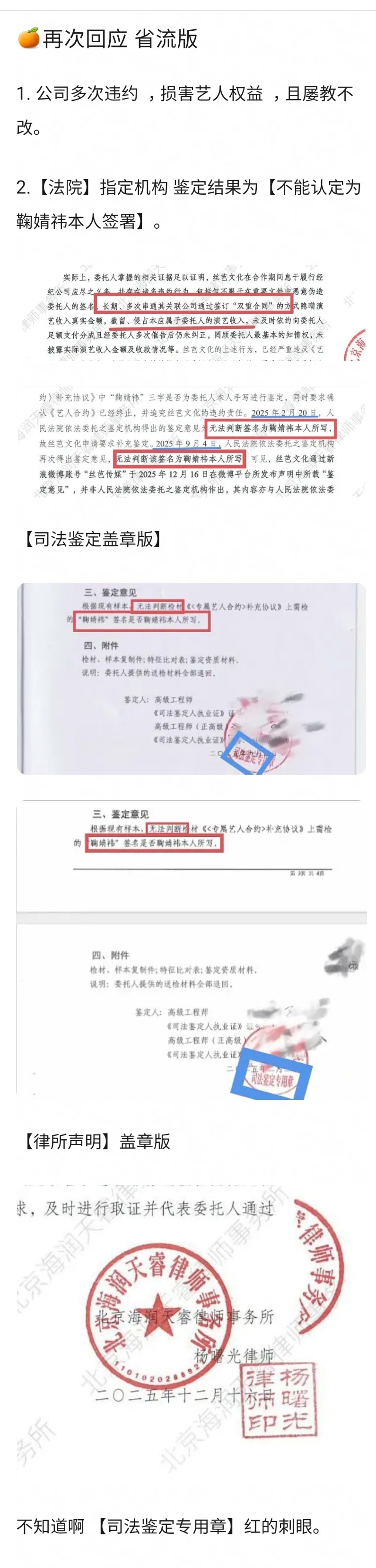 鞠婧祎方艾特丝芭丝芭回应鞠婧祎 这个呱越吃越大了,鞠婧祎方说丝芭签订“双重合同”,侵占艺人收入