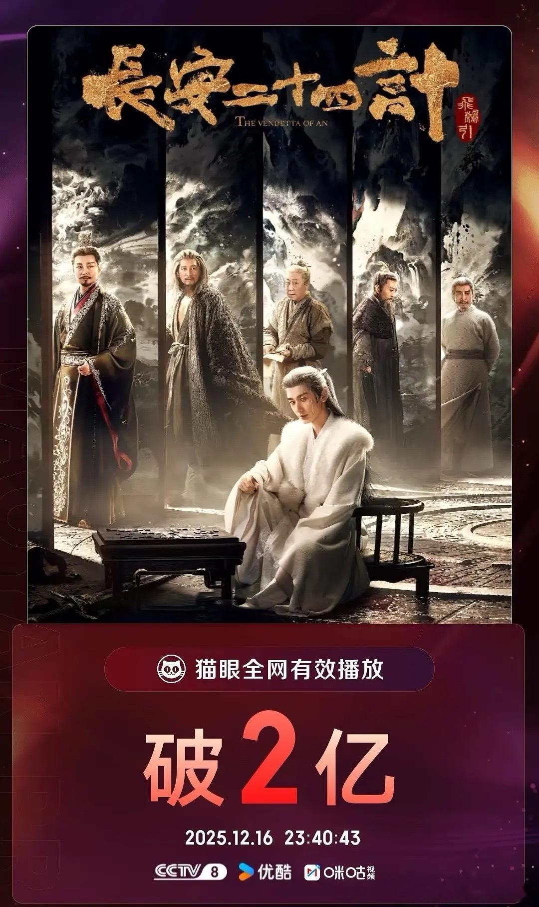 台湾TVBS新闻报道成毅《长安二十四计》口碑狂飙席卷观众热情,有望成年度剧王。成