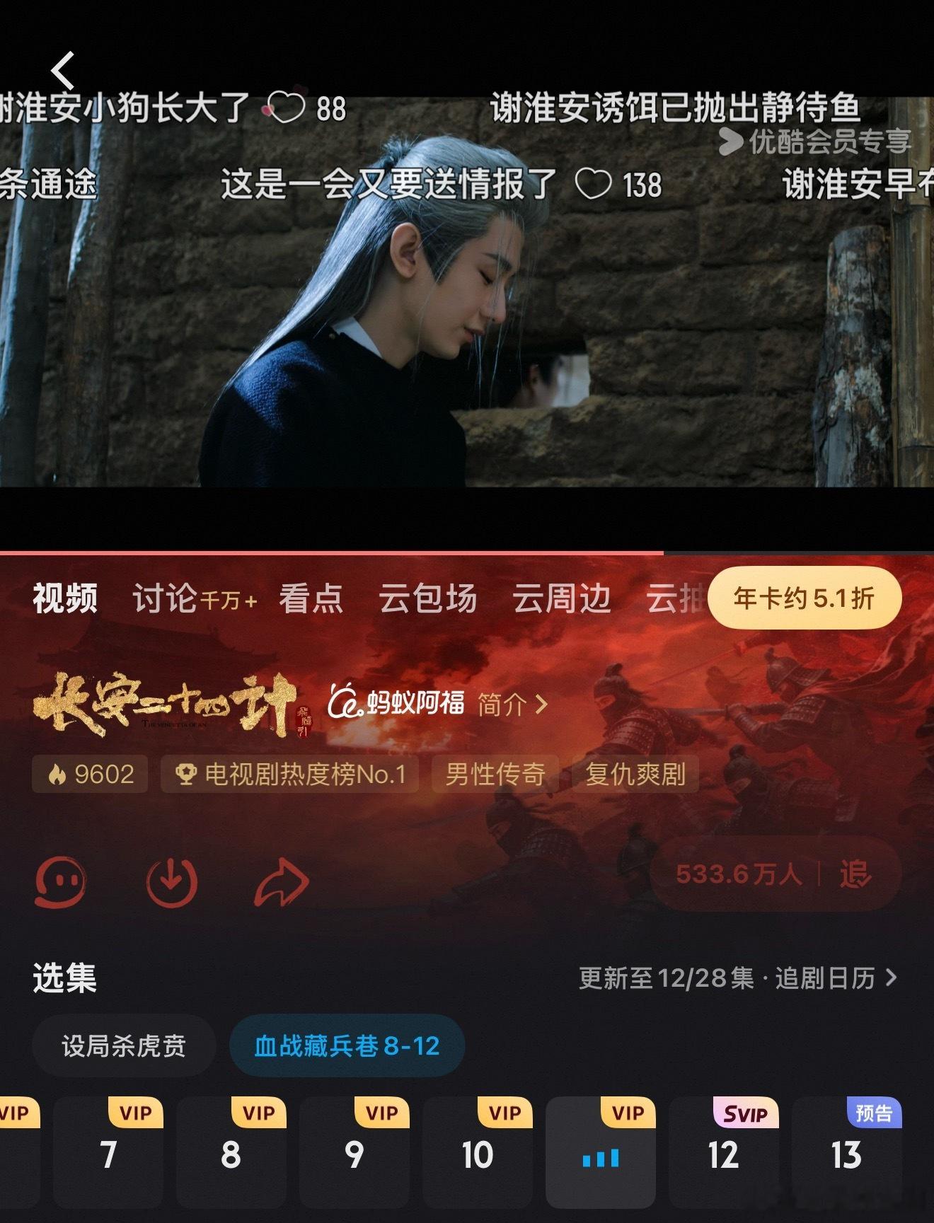 成毅《长安二十四计》站内热度破新高来到9600,收视走势更是旱地拔葱,累计播放量