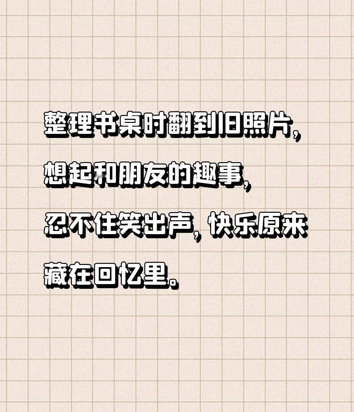整理书桌时翻到旧照片,想起和朋友的趣事,忍不住笑出声,快乐原来藏在回忆里。