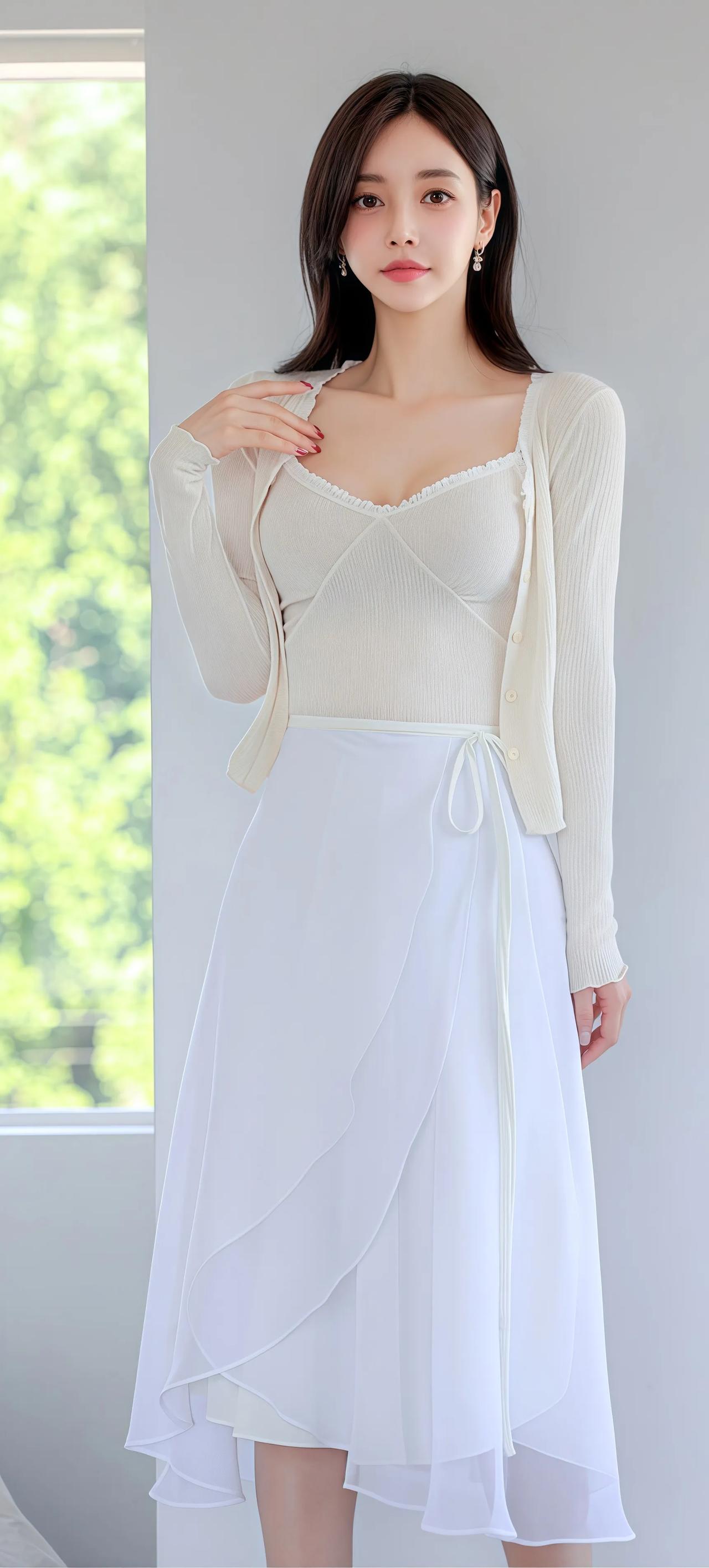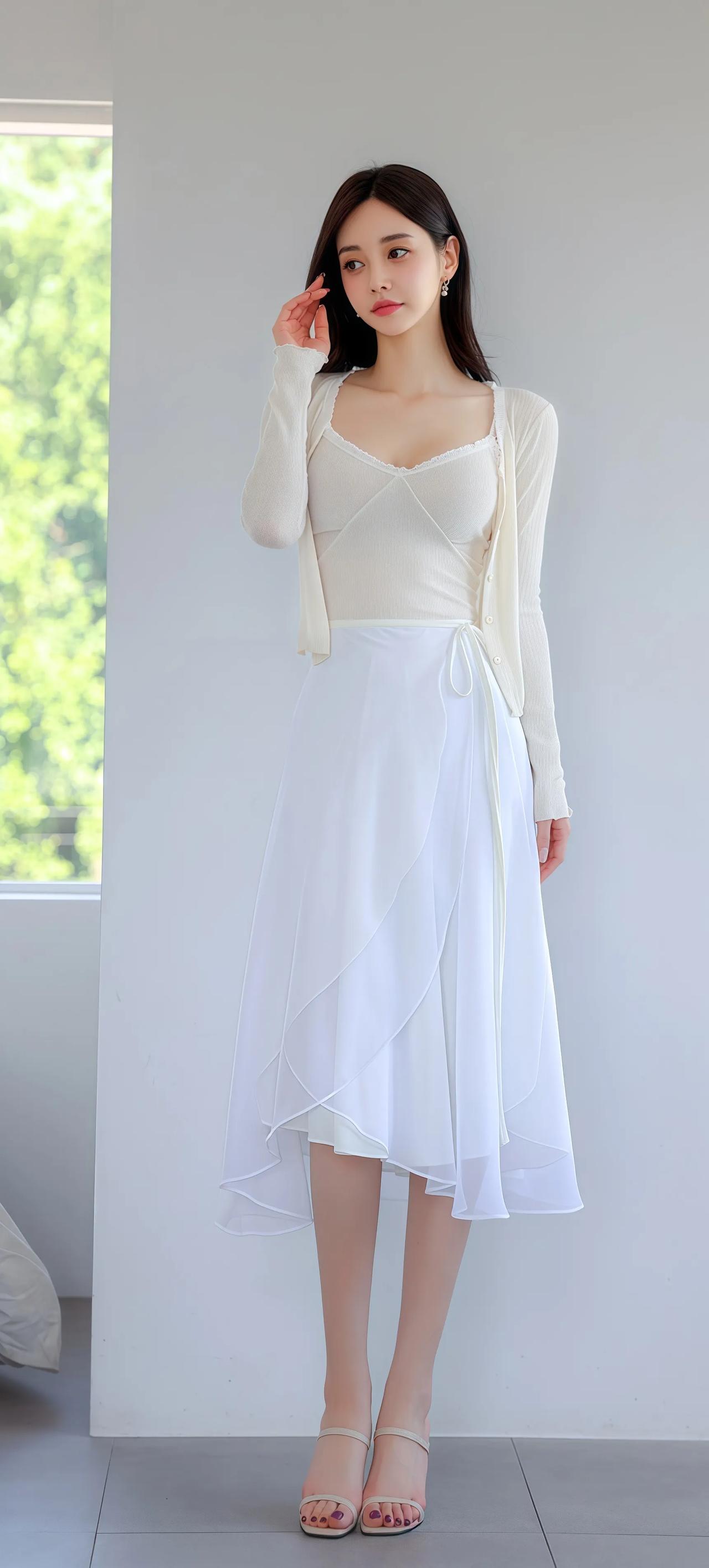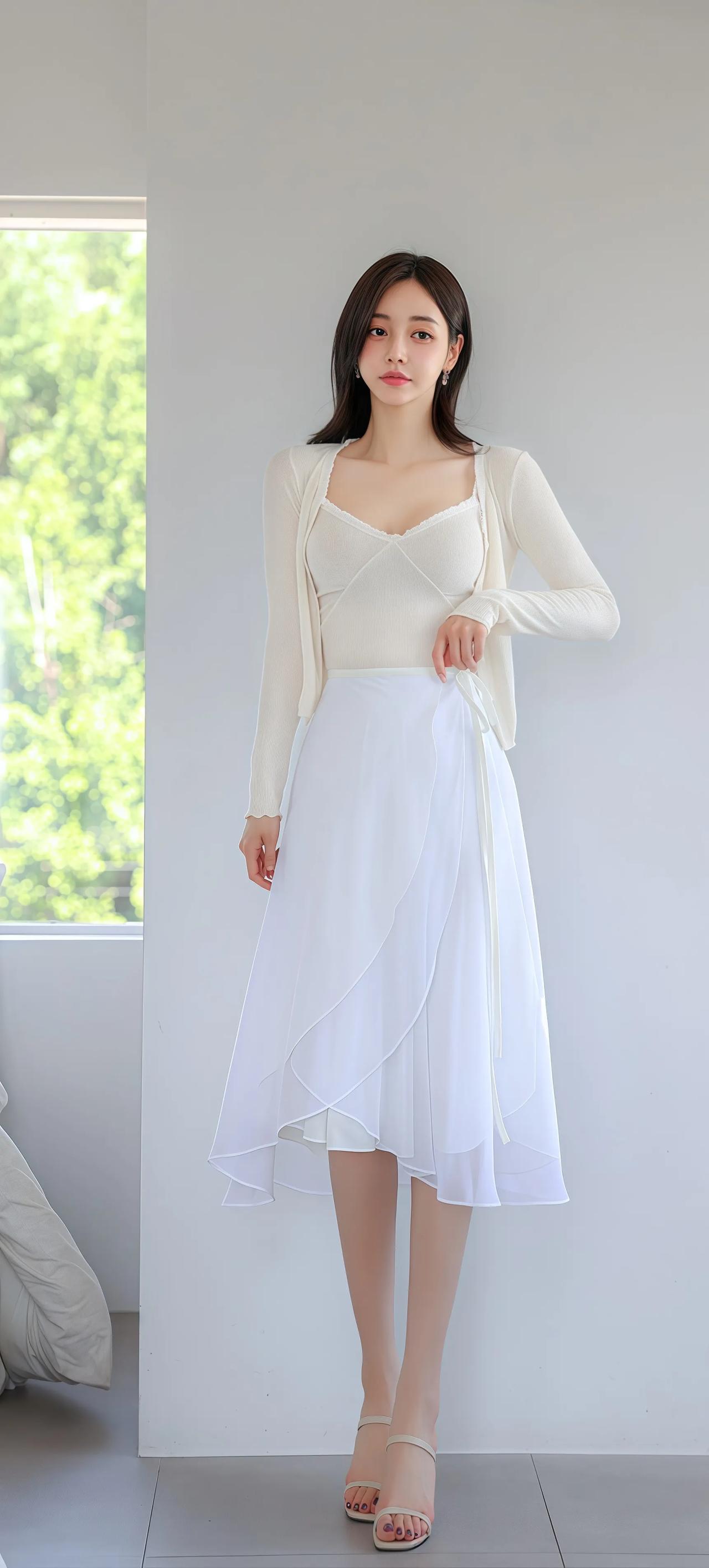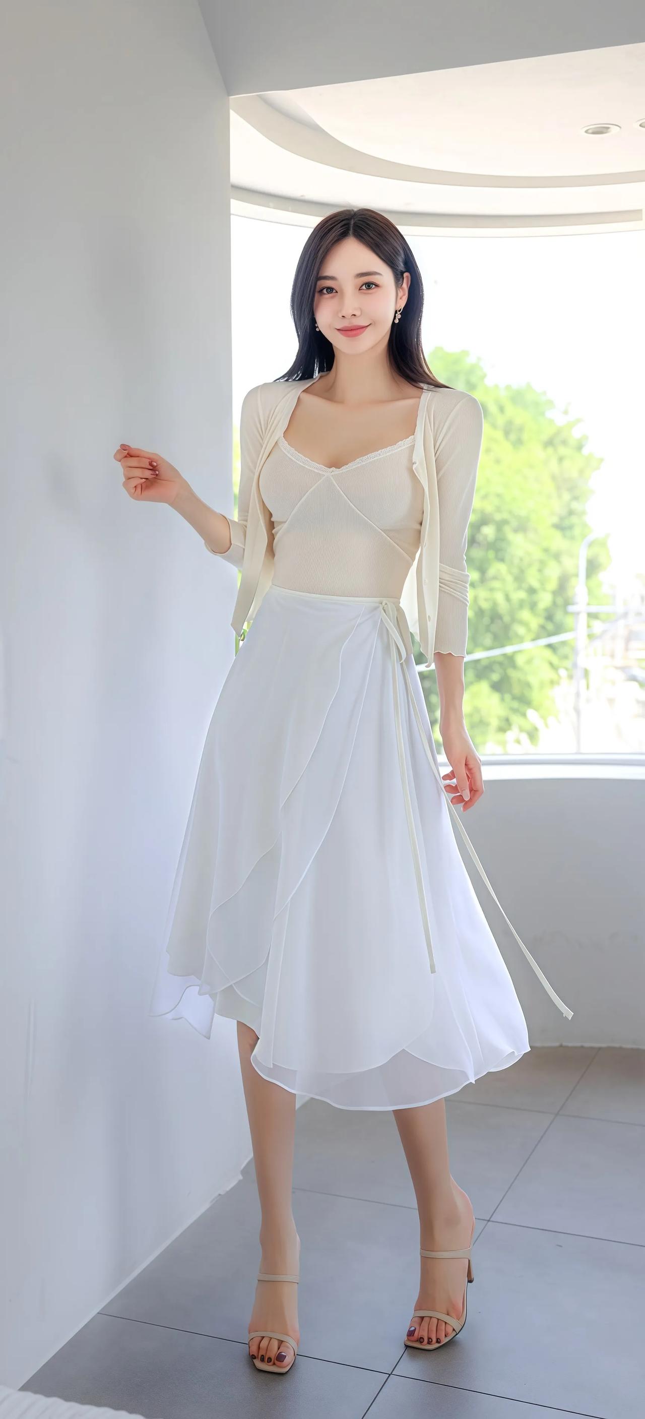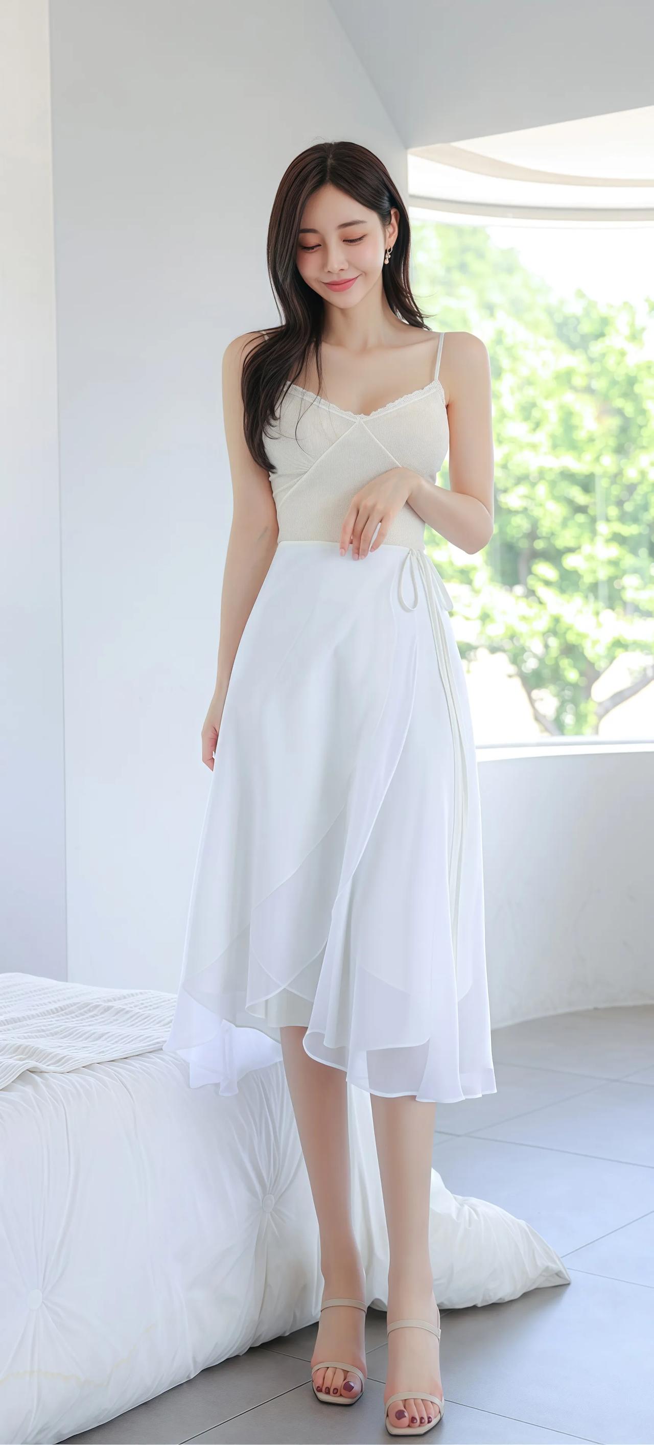 清新夏日穿搭,白色连衣裙搭配自然光,尽显优雅与温柔。