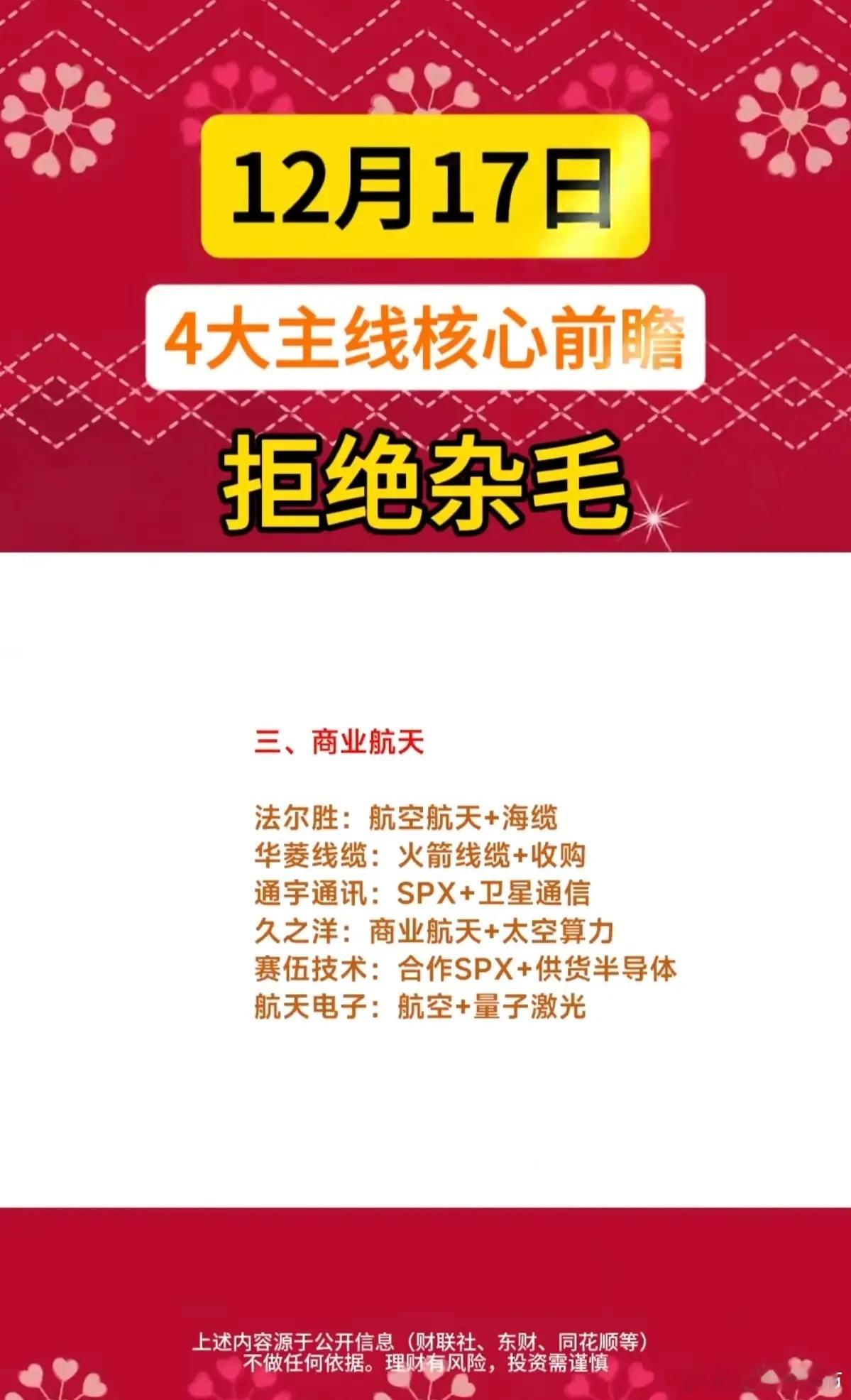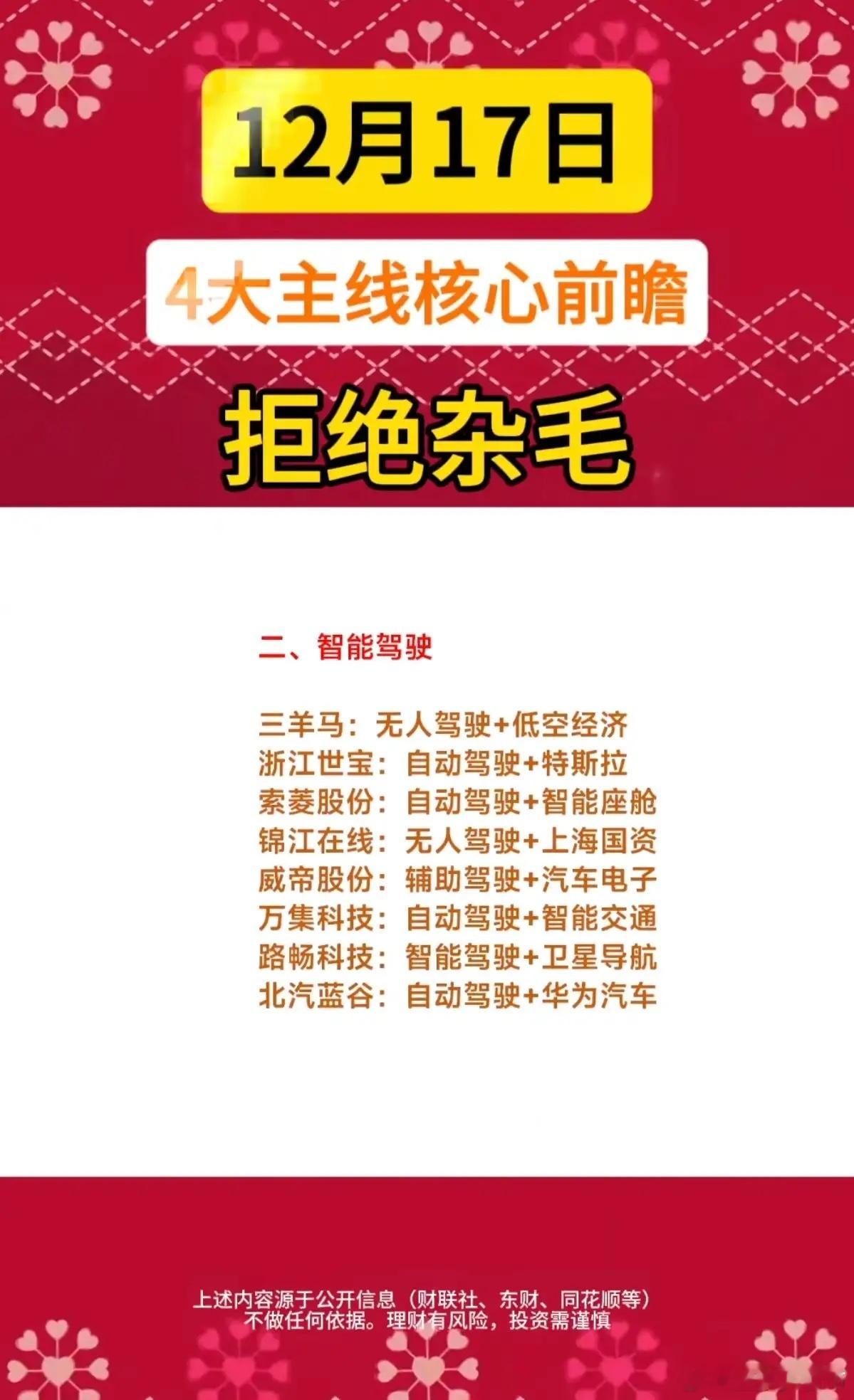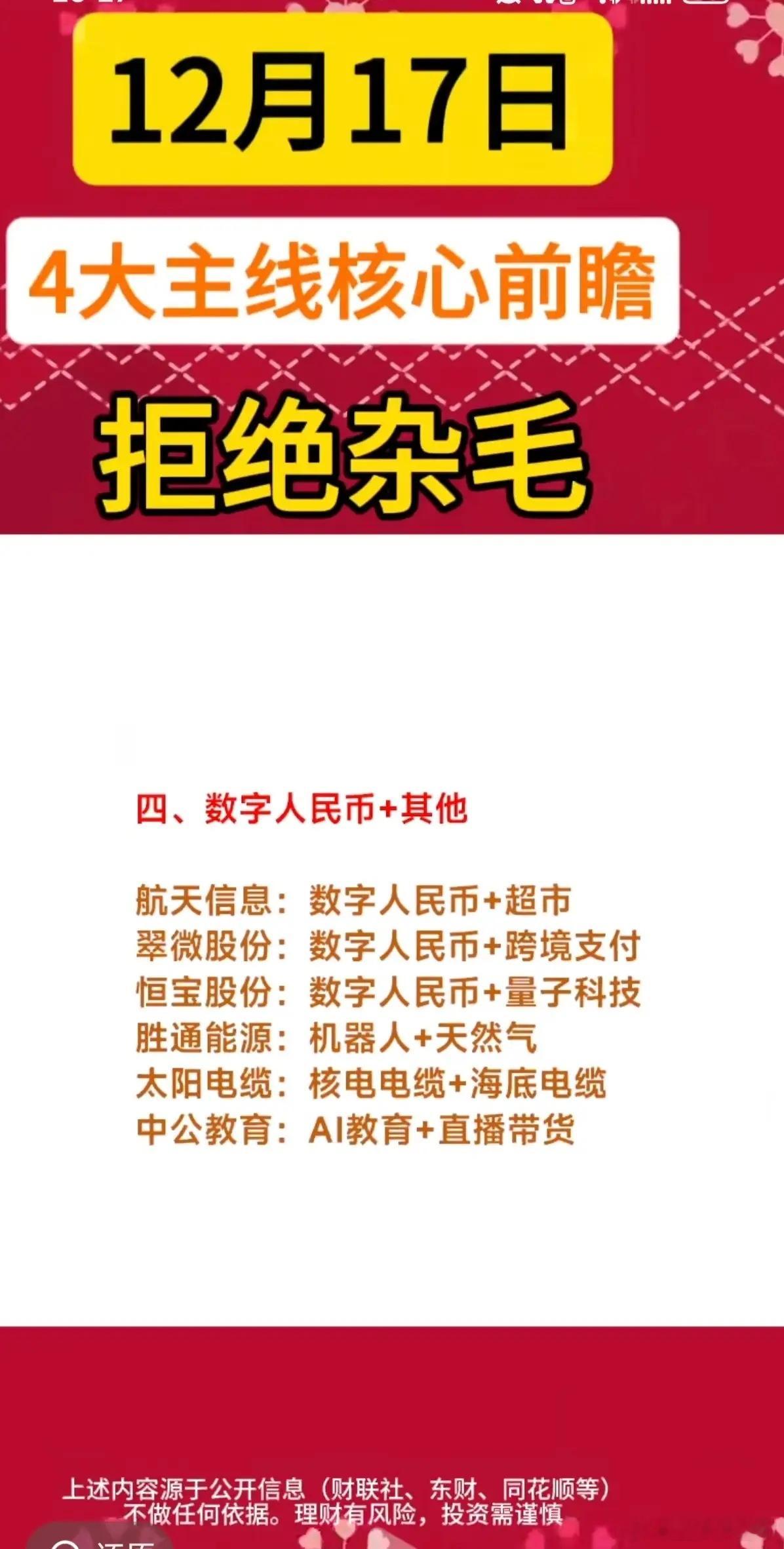 12.17周三 市场四大主线:核心前瞻!1.大消费:商超+百货+零售+连锁2.智能驾驶3.商业航天+特殊电缆4.数字货币