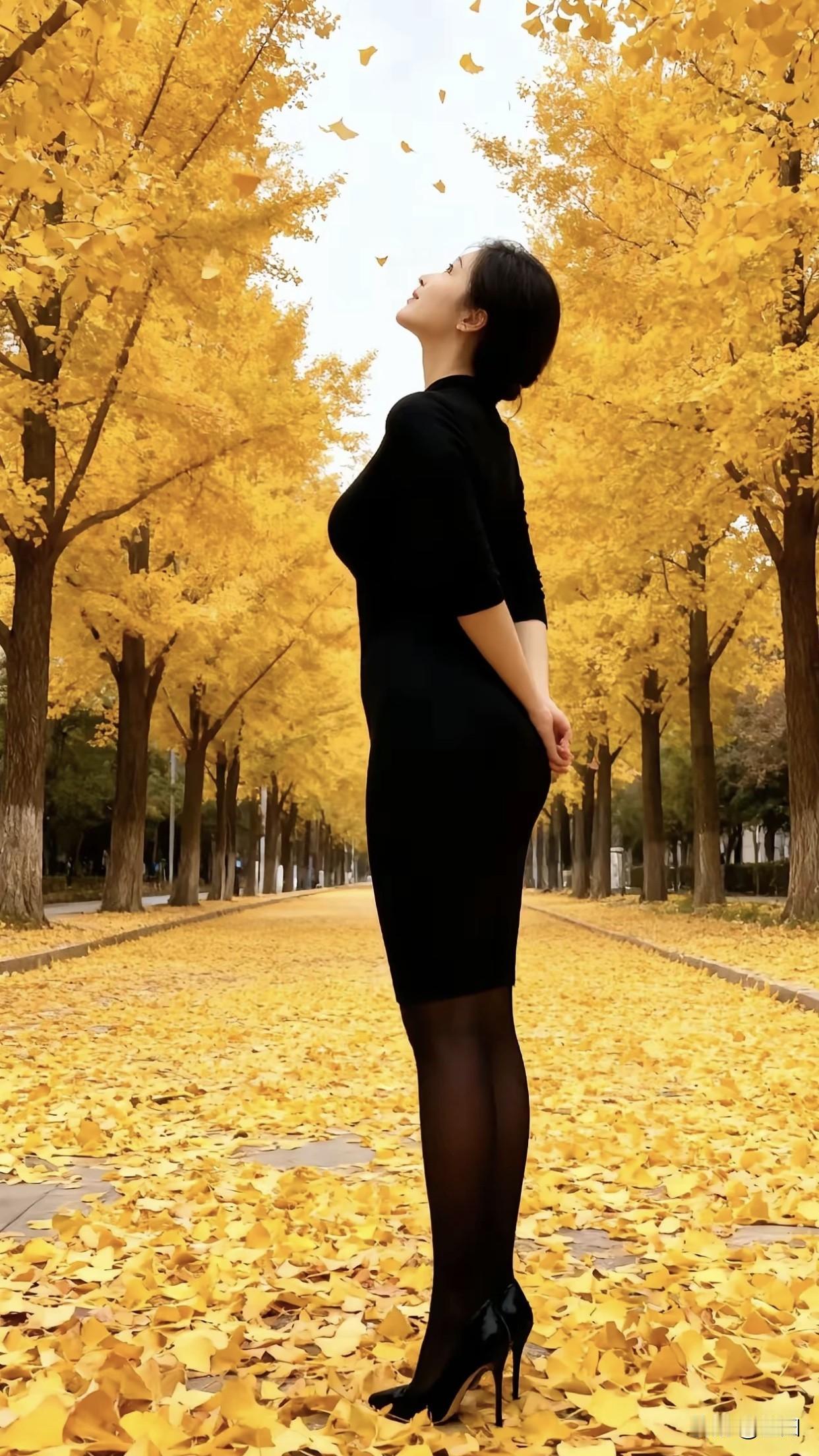 能分享一下你相册里的风景照片吗秋日漫步,落叶纷飞,优雅黑裙,尽显风姿。