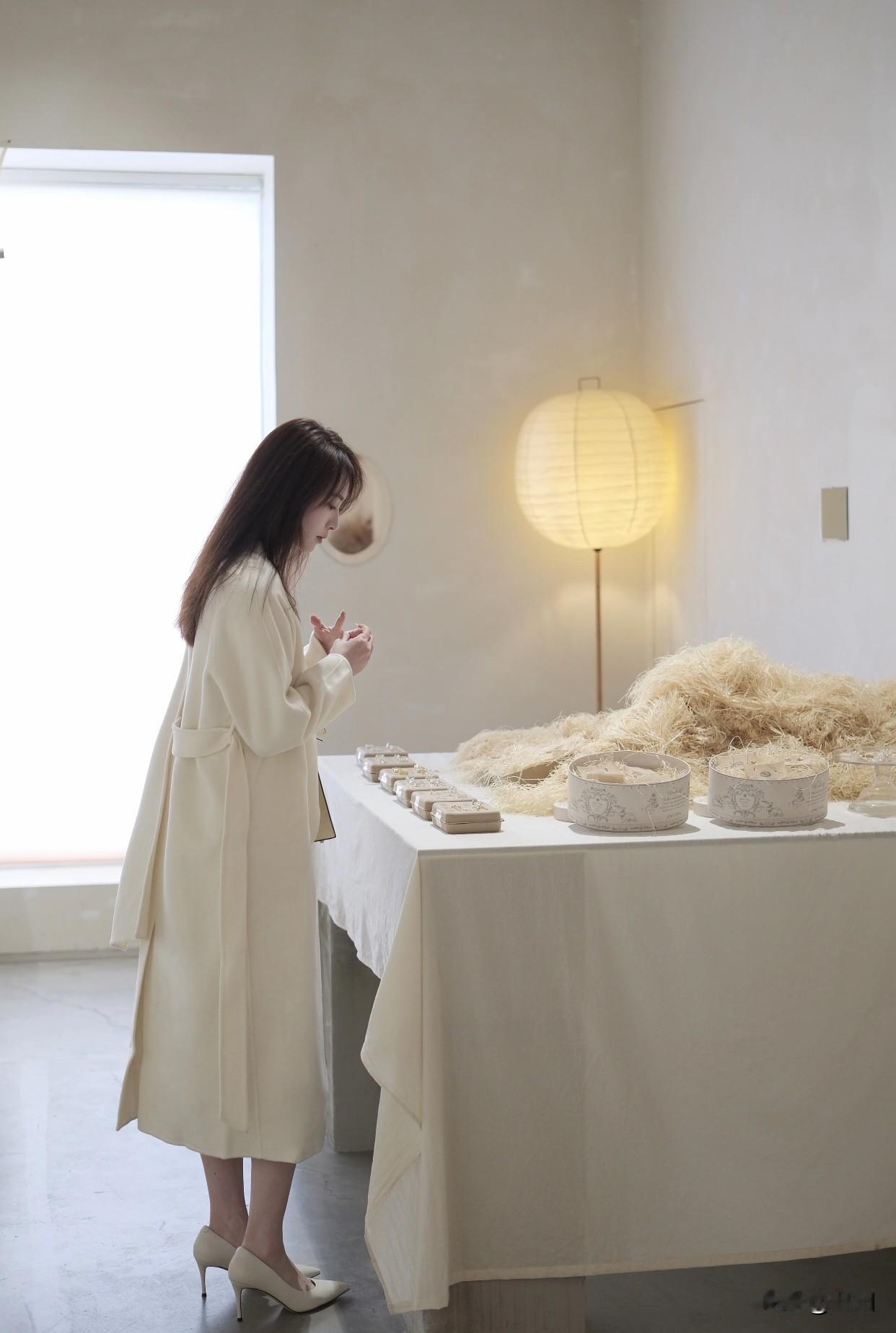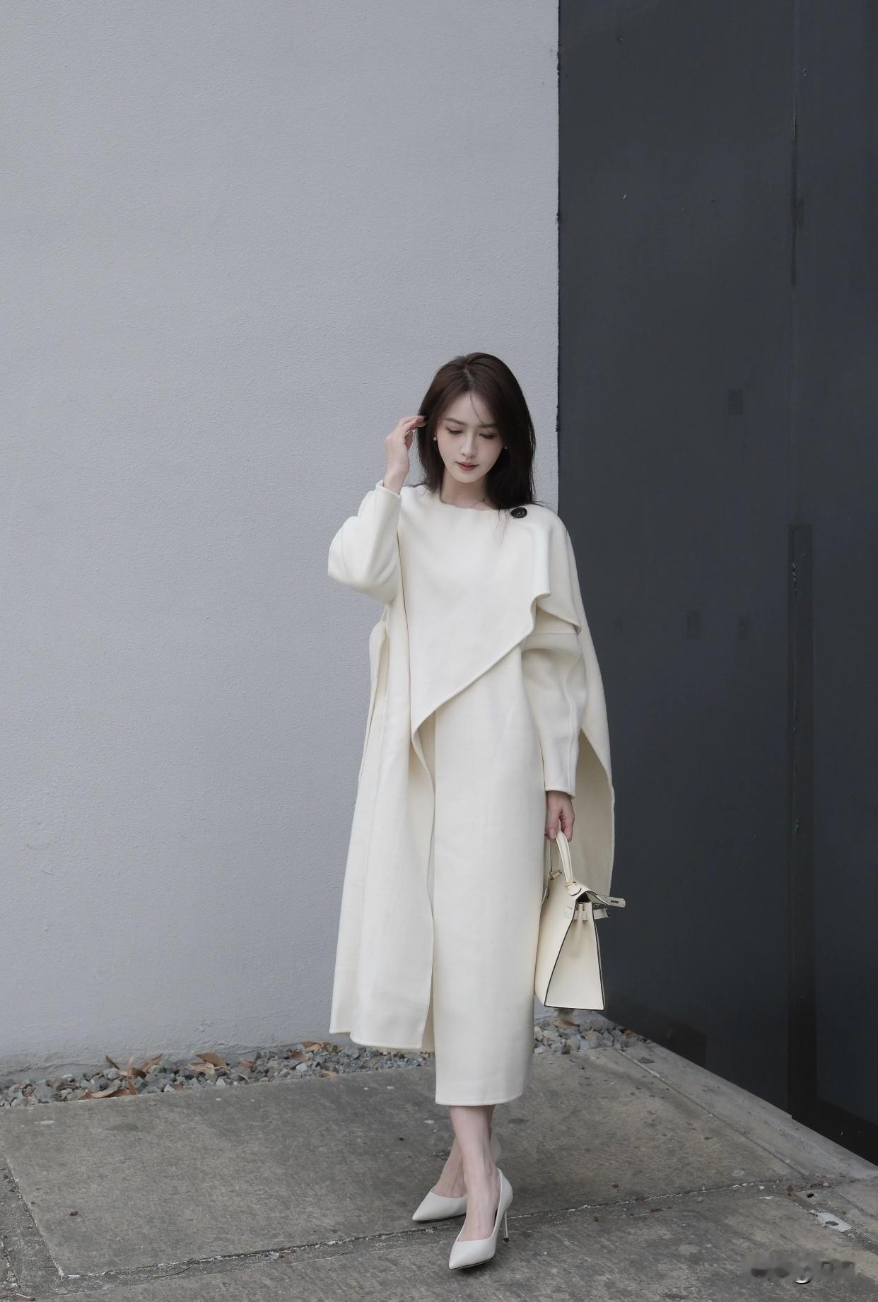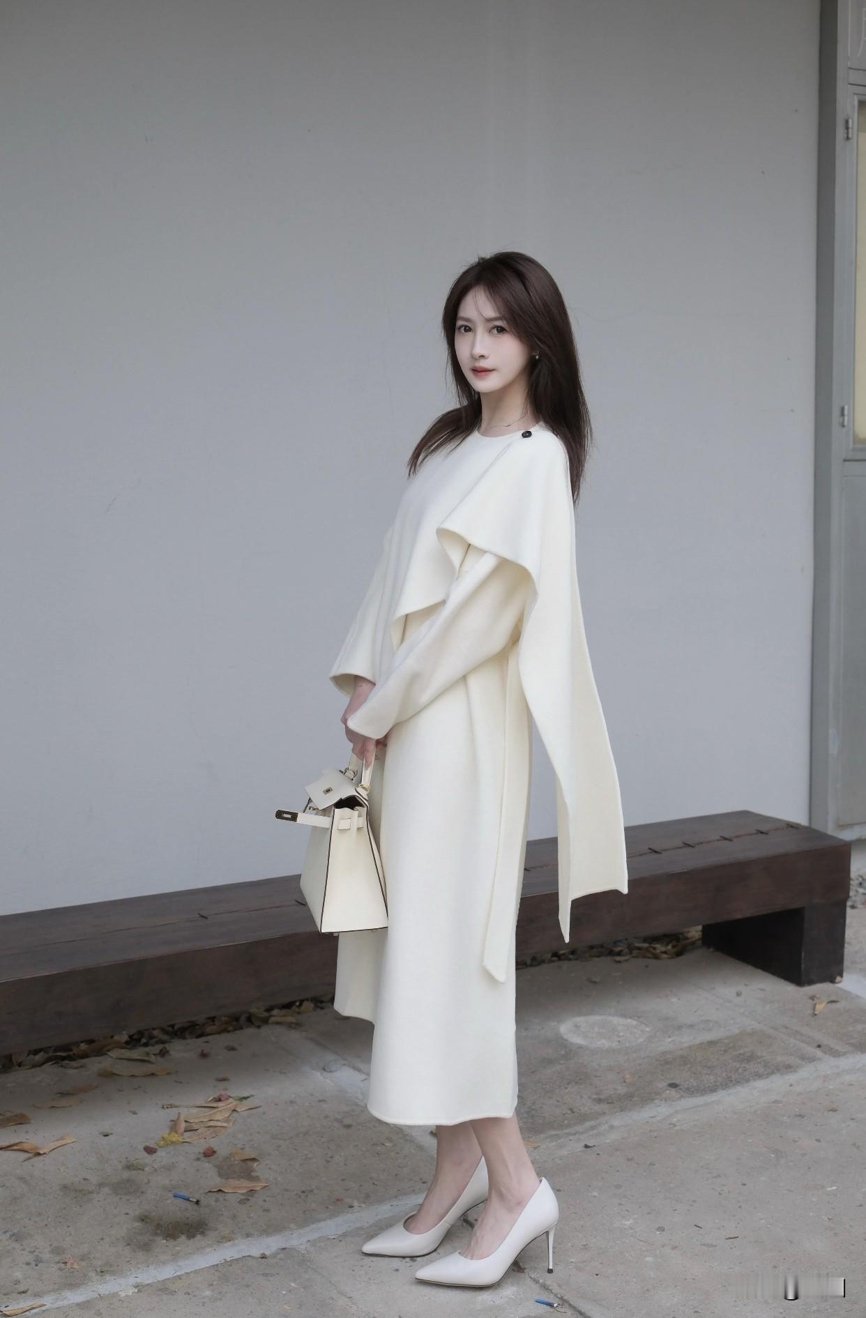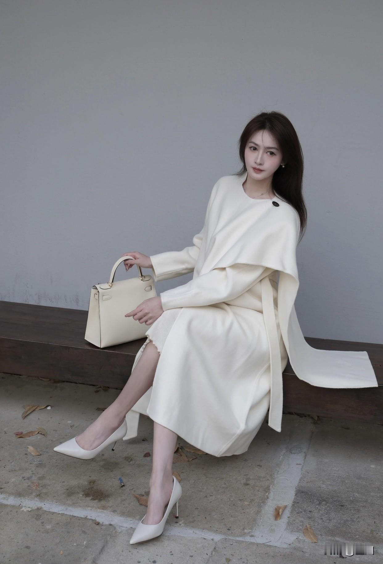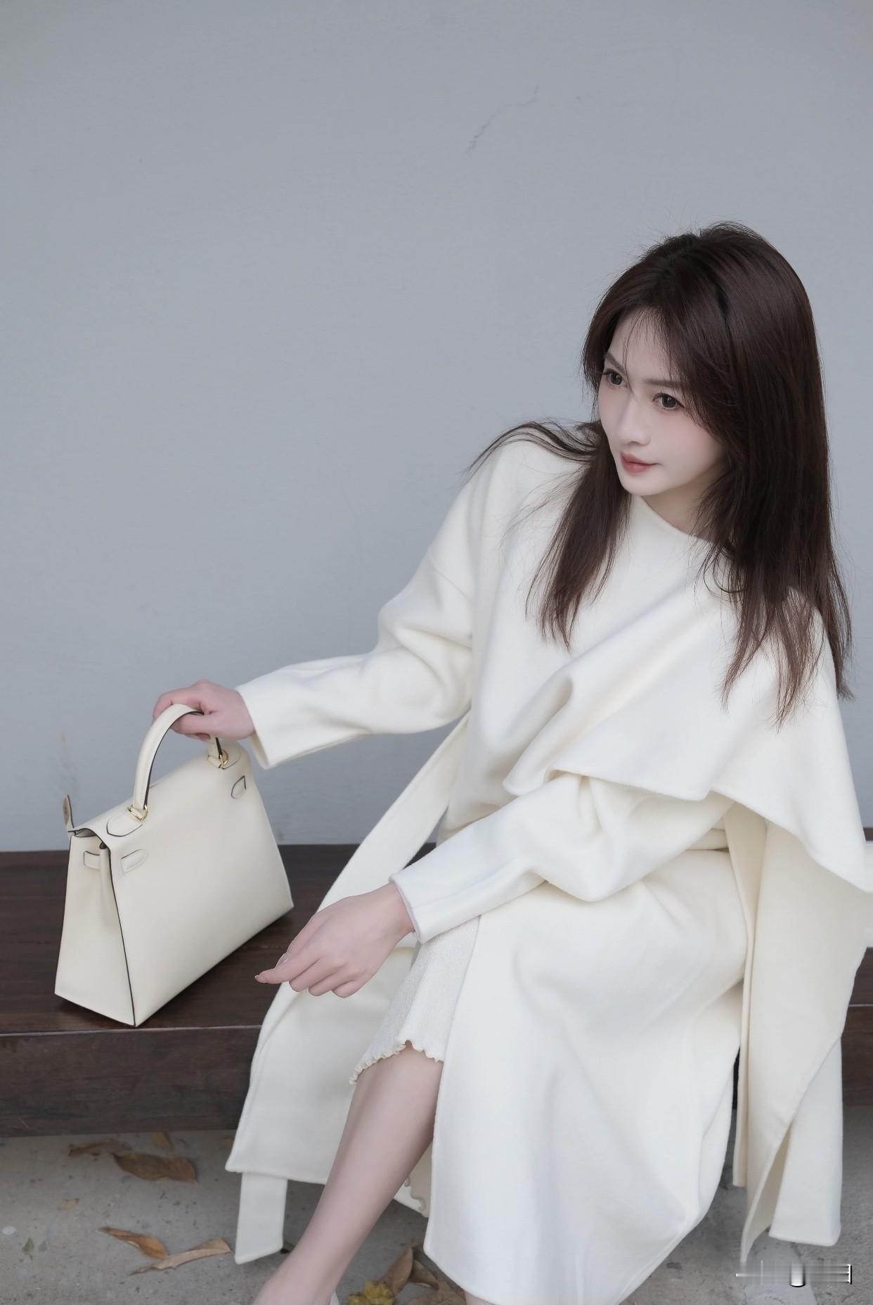 什么搭配显气质优雅白大衣,都市时尚风,Gingin咖啡馆前,秋日暖阳下。