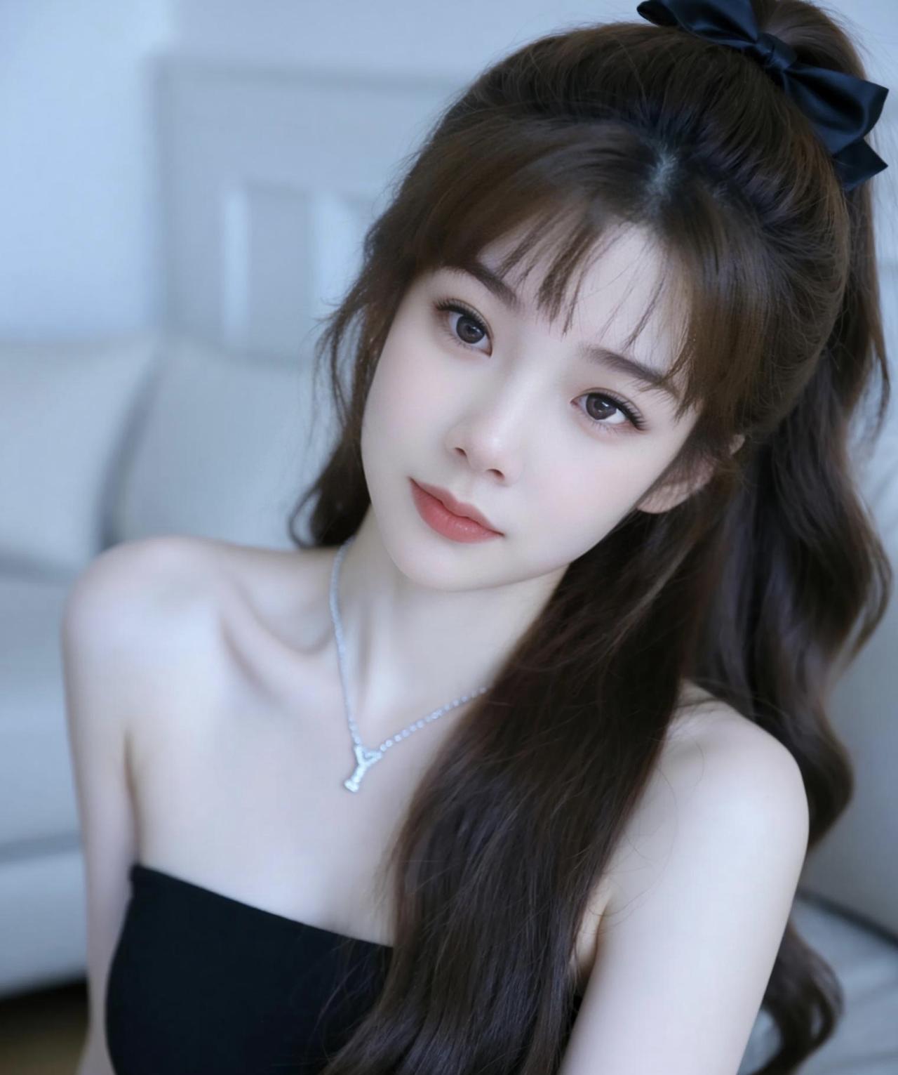 甜美少女风,黑发蝴蝶结,优雅气质照