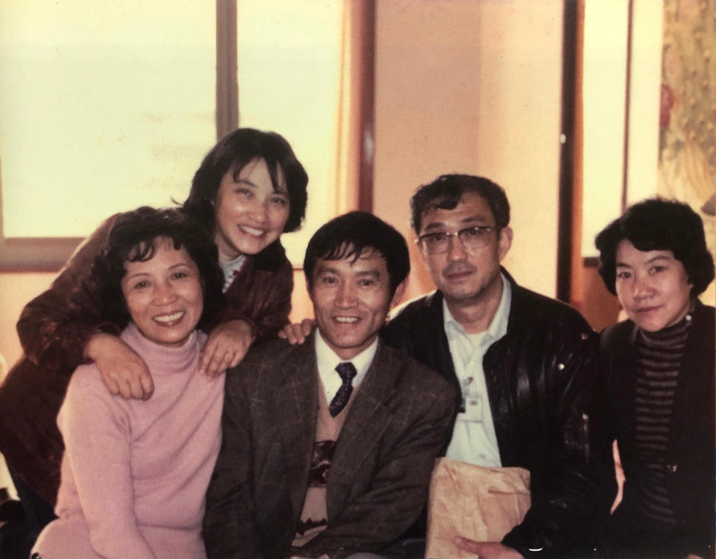 1985年电影《红色娘子军》部分剧组人员在广州聚会,前排左起蒋逸芳(饰演大樱)、牛犇(饰演小庞)、导演谢晋、王黎(饰演连长),后排是祝希娟历史影像