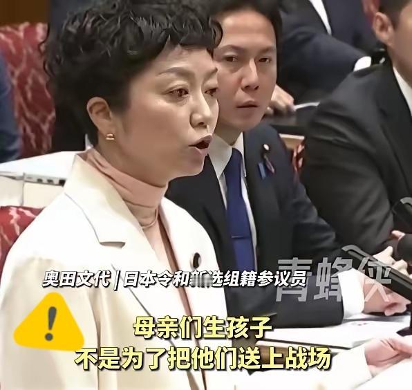 “别被女首相身份骗了!”日本新议员5分钟怒怼高市早苗,这话戳中了多少民众的心! 身为三个孩子的母亲,奥田文代的质问太狠了:“母亲生孩子不是为了送他们上战场!” 她10秒逼问让高市承诺不把孩子推上战场,转头就反问:11万亿日元军费砸出去,却只给困苦民众发3千日元米券,教育投入垫底、学生自杀率飙升,这哪是护民? 高市一门心思想扩军修宪,还想讨好美国砸80兆日元,却对民生疾苦视而不见。 所谓“女首相共情”全是假象,奥田的犀利发声,本质是戳破了日本当局“以扩军换安全”的谎言——真正的守护,是给孩子安稳的未来,不是把国家拖进战争风险。 民众要的是和平民生,不是军备竞赛。高市若还执迷搞对抗,只会冒出更多奥田文代。你觉得日本民众的和平呼声,能拦住其扩军的脚步吗?
