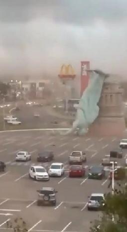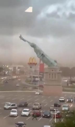 巴西南部城市瓜伊巴(Guaíba)15日下午遭猛烈暴风雨侵袭,当地一座约35公尺高的自由女神像在强风中倒塌并严重损毁,所幸未造成人员伤亡。该雕像为巴西大型连锁零售商Havan设置于分店停车场的标志性装饰,事故后现场已封锁并清理。 “雕像经济”受关注 极端天气酿文化地标风险 据当地气象部门报告,风暴期间阵风风速超每小时90公里,伴随强降雨横扫南部地区。事发于下午3时左右,社交媒体流传的影片显示,雕像在狂风中逐渐倾斜,最终倒塌碎裂,头部坠地后彻底破碎。