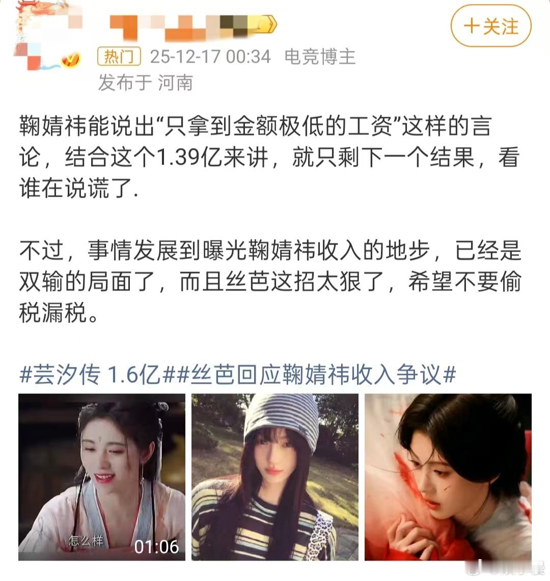 丝芭鞠婧祎双输 鞠婧祎和丝芭这出戏真是越来越有看头了,工资单一曝光,吃瓜群众都傻眼了。鞠婧祎每月25万元固定工资
