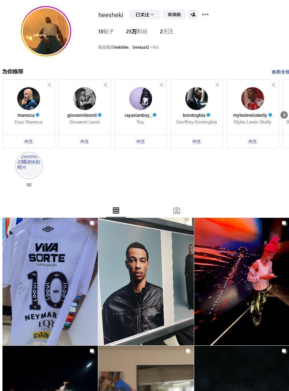 雨果谈到他有两个Instagram账号他说他的主账号基本上只用来发布足球相关的内