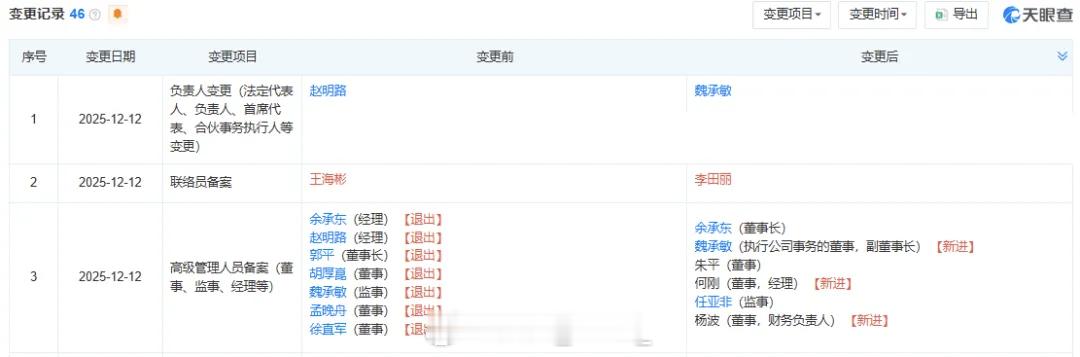 天眼查工商信息显示,近日,华为终端有限公司发生工商变更,郭平卸任董事长,由余承东接任,孟晚舟、徐直军等卸任董事,同时,多位高管发生变更。