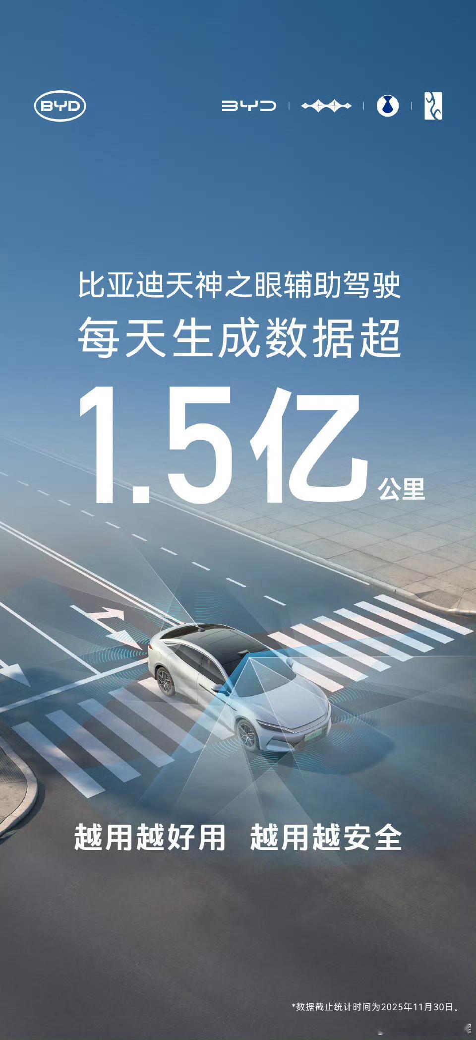 比亚迪“天神之眼”日均1.5亿公里的智驾数据,大家可能没有概念,大概地球与太阳的平均距离。另外该数据量也相当于绕地球3740圈,远超华为乾崑智驾同期日均约0.187亿公里的智驾数据量……今年来看比亚迪这个保有量还不够猛,明年年底来看就是超700万辆的智驾车型,如果可以搭载传说中那块自研的芯片,这个智驾能力和迭代速度简直了以下是豆包统计保有量数据:- 小鹏:预估智驾车型保有量68万辆- 鸿蒙智行:智驾车型保有量超95万辆- 理想:智驾车型保有量140万辆- 比亚迪:智驾车型保有量230万辆